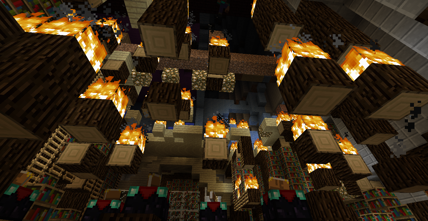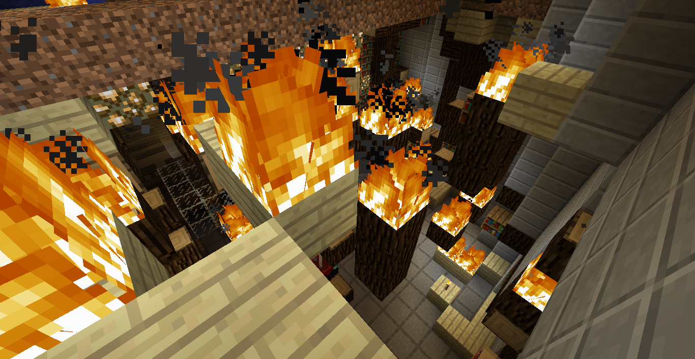 Сегодня, во время очистки потолка 1 этажа от люстры(деревянной) посредством использования на неё зажигалки, странным и загадочным образом, огонь передался через камень на верхние этажи. Огонь так быстро разошёлся, что еле-еле удалось остановить распространение. Больше всего пострадала библиотека, 3 этаж пострадал меньше, так как гореть там кроме шерсти (стены и пол) было нечему. Работа на Башне временно приостановлена. АПД: Благодаря Бригаде пожарных (В лице Wellwisher'a) Библиотека была не только потушена, но и восстановлена, работа продолжается)