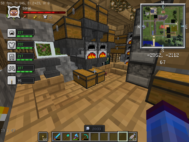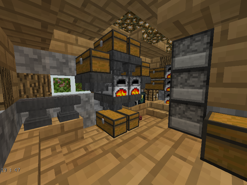 Единственное что, можно было бы с ближнего ряда печек воронки для взятия готовой продукции направить сразу в сундук, а не в соседние воронки.