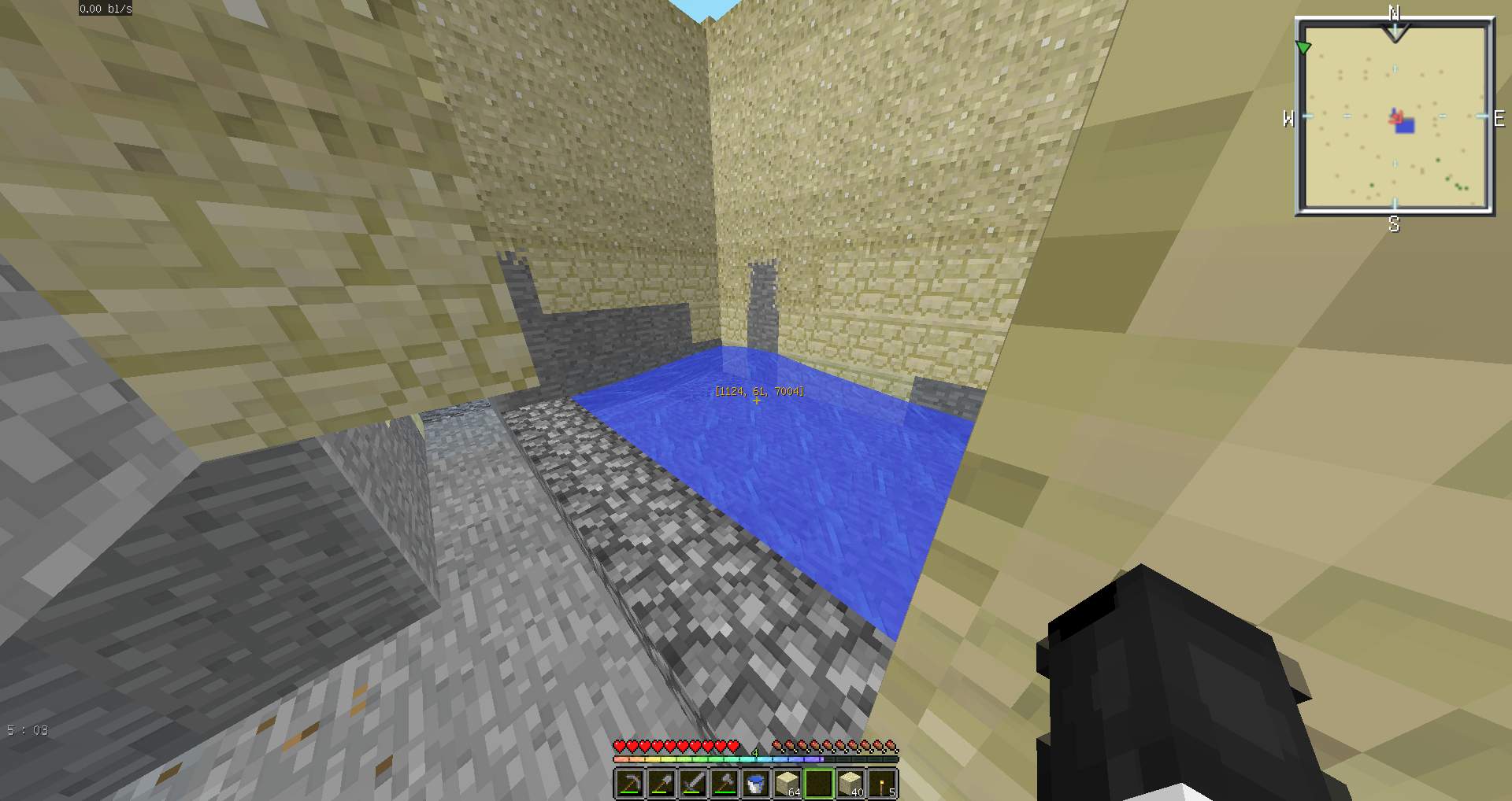 По поводу андезита, диорита и пр: я намерянно выбрал в пустыне самый загаженный участок - мне всё равно нужно было закрывать терру площадкой под пиксельарт - почему бы не закрыть булыжниковое пятно на карте пустыни? Андезитом, диоритом закрыл раскопки вокруг + избавил сундуки от излишков этих самых строительных блоков. Получилось даже симпатично - плоская дорожка с эффектом 3D (тоже своеобразный пиксельарт). Все равно на перенос пойдет только сама площадка под карты, так что особо стараться над "излишками" привата не вижу смысла. Нет уродливого пятна на карте рядом с султанатом и ладно )