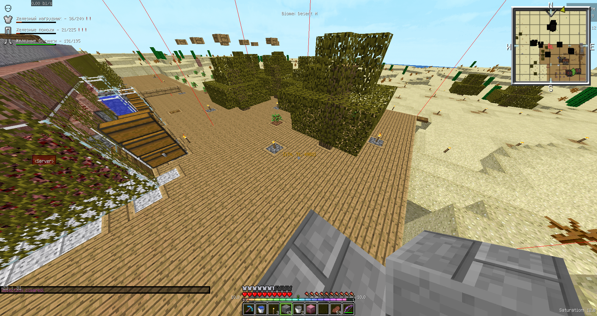 Здесь я использую доски от обычного дуба. 2019-09-24_23.31.21.png но это выглядет красиво. Кому не нравятся зелунушки и леса? Зато под этим "полом" можно выкопать аж всё, даже песчанник 2019-09-24_23.31.50.png . Да я сделал так всего с 1 чанком за границами привата. Мало, но ничего.