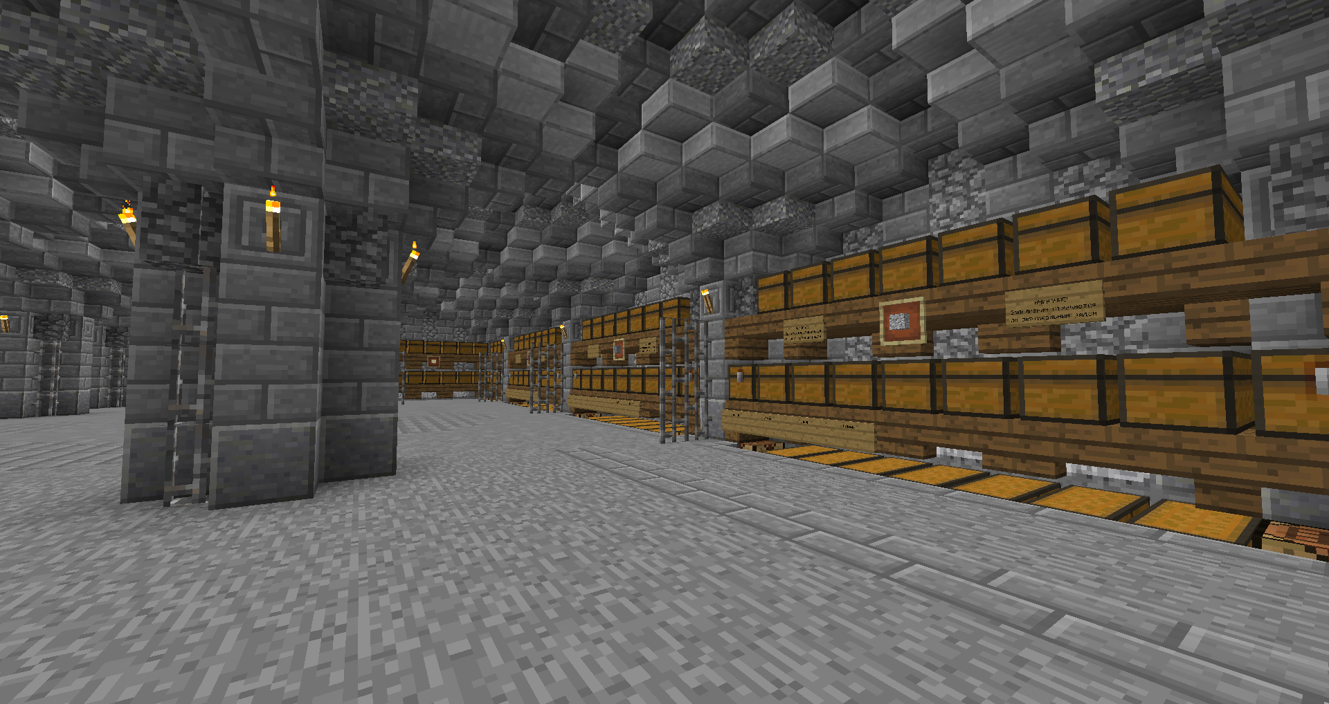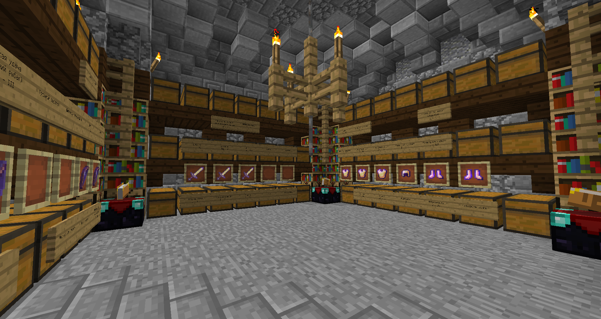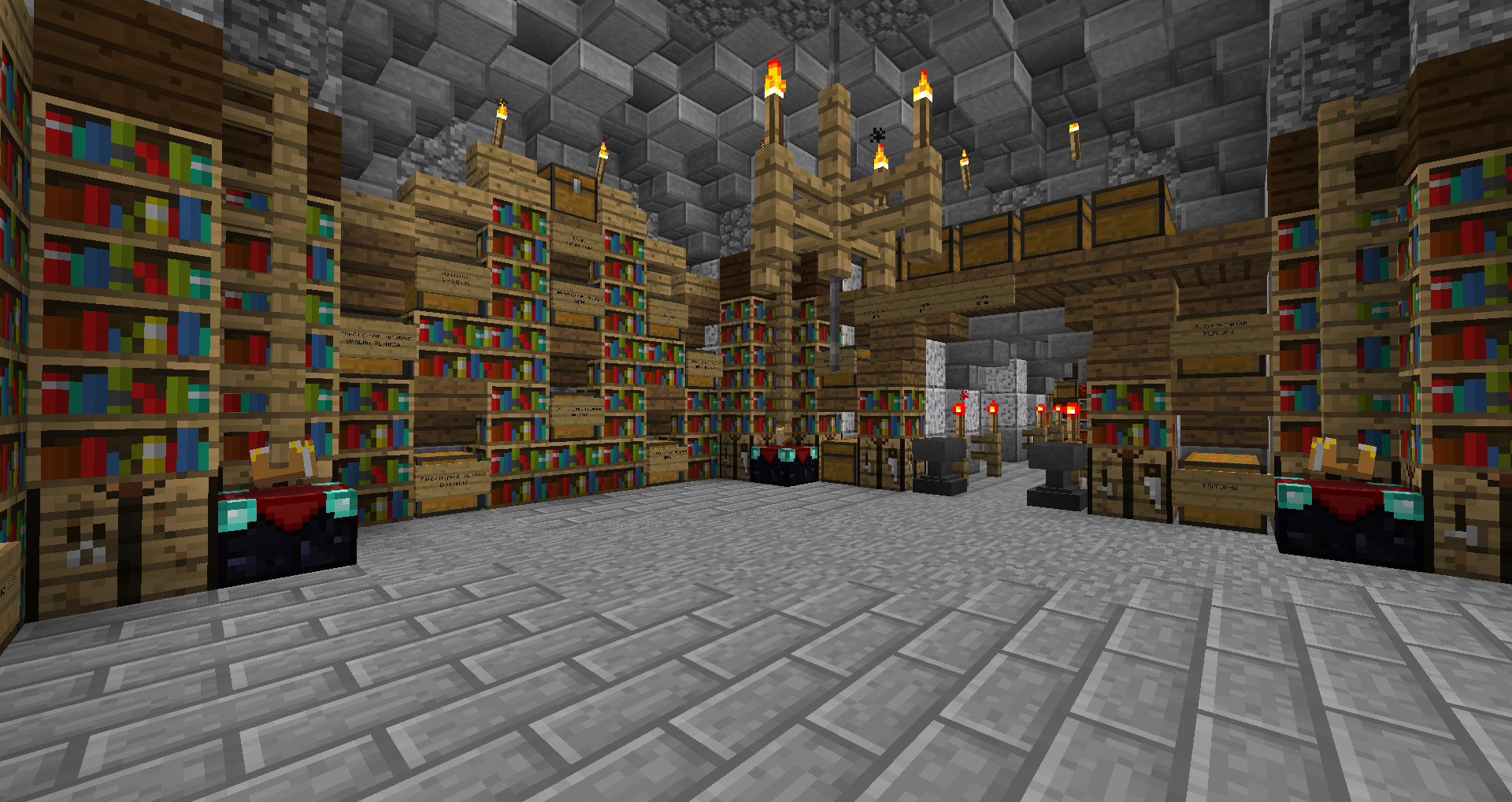 А также построенный заново на новом месте (старое не устраивало) склад книг игроков. Короче - библиотека, но не декоративная а функциональная. Было бы ещё больше, но около полутора сундуков книг в своё время заполучил в свою библиотеку John_Locke [smile]