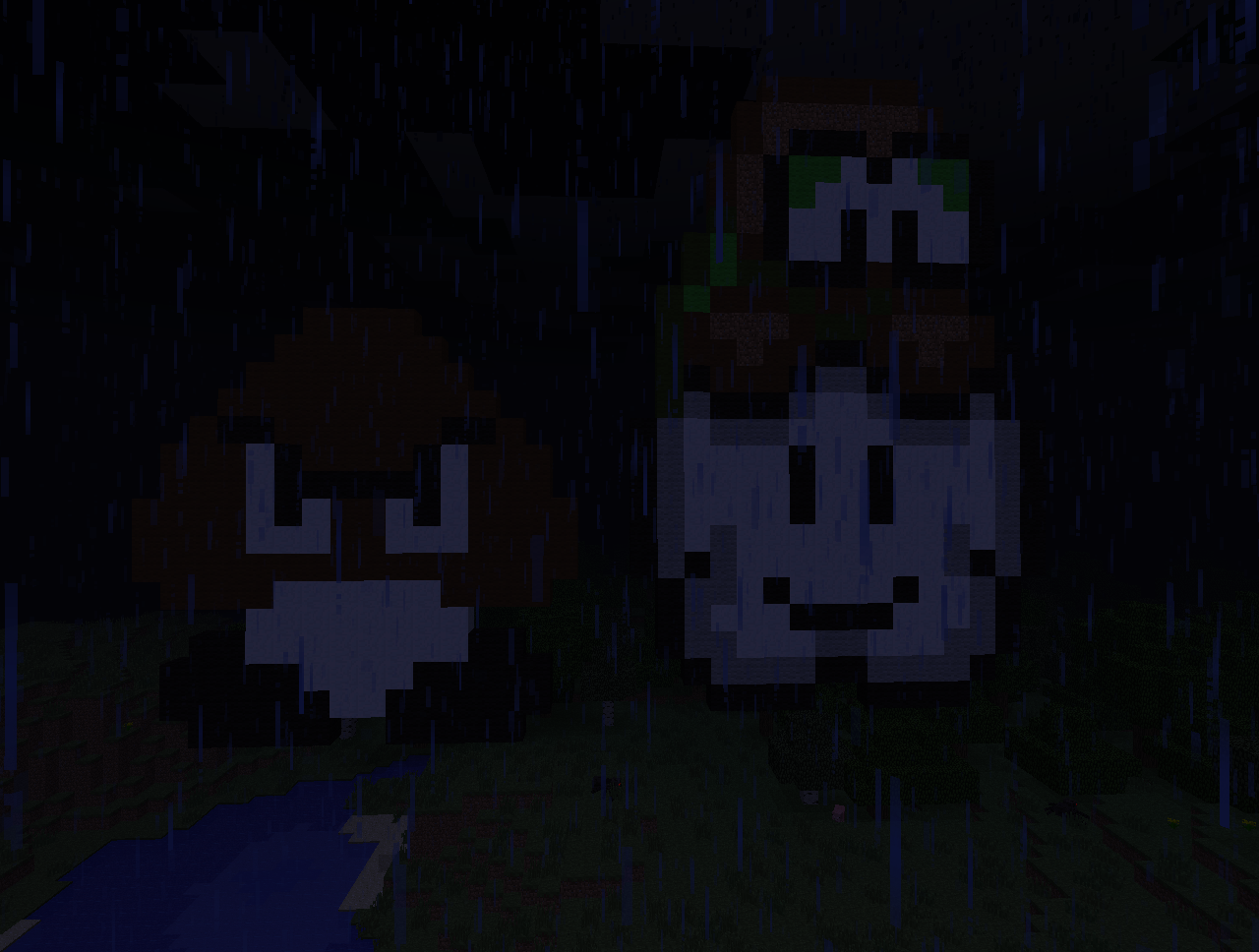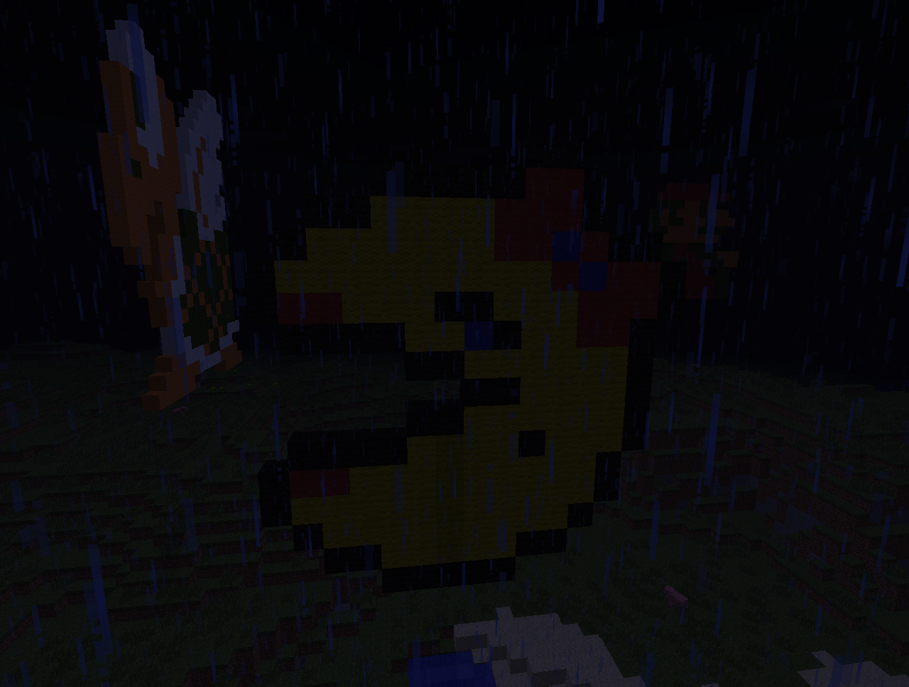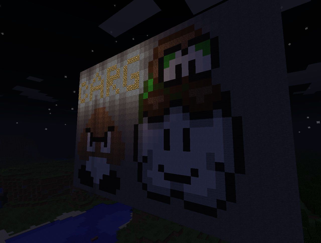Почти у всех персонажей есть коричневый цвет (красится какао-бобами, которые фиг найдешь) и это немного затрудняет положение =\ ЗЫ, Я это, кстати, в креативе делал. upd: Вот если бы мне кто-нибудь под это дело ресурсов выдал upd2: Или скинулись все вместе, сделал бы где-нибудь поближе к респу, чтоб все видели.