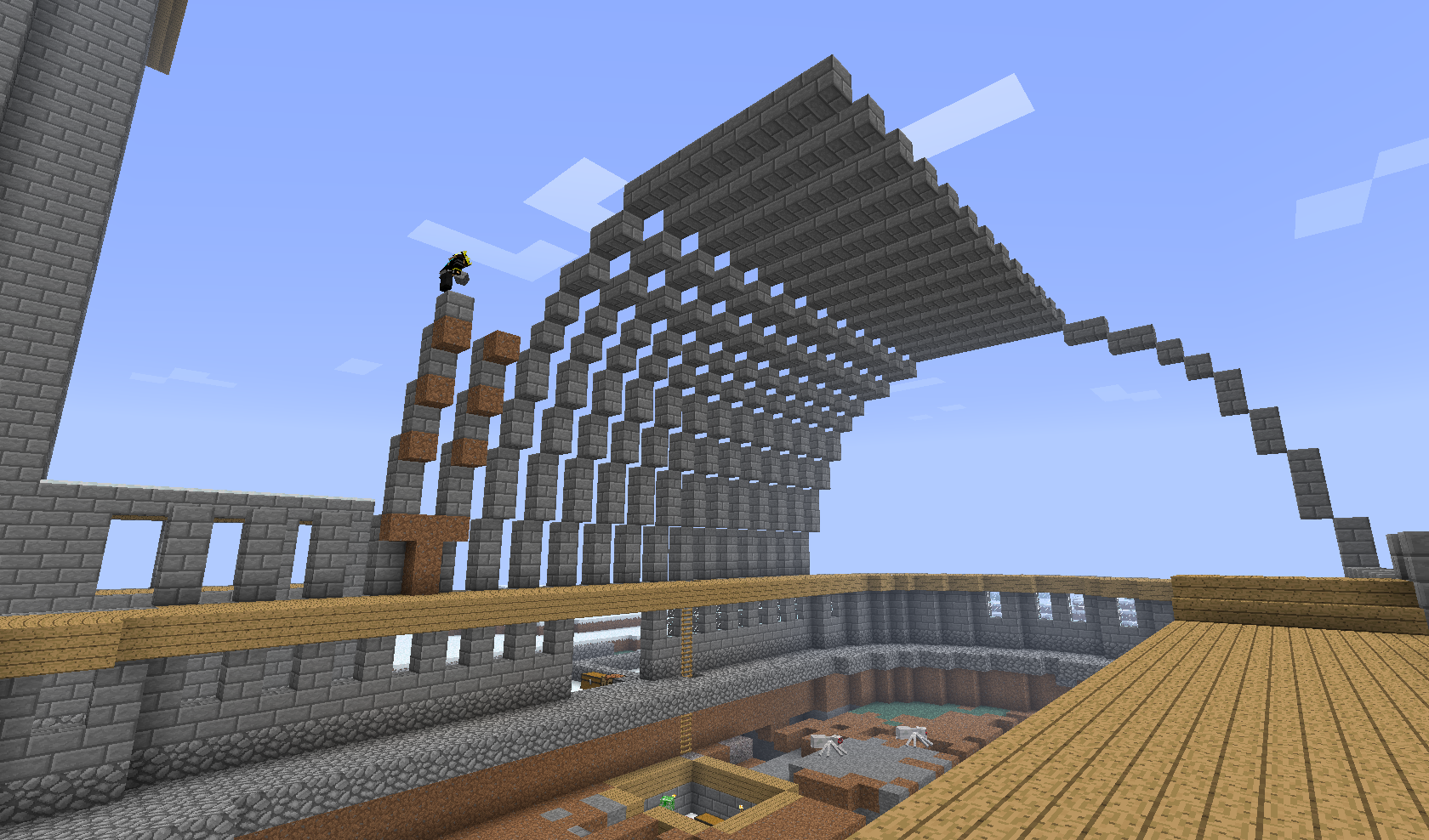Этот человечек на скрине, некий nice001, четыре раза падал с этой постройки и разбивался насмерть, но каждый раз упорно продолжал строить. За что его и благодарю)