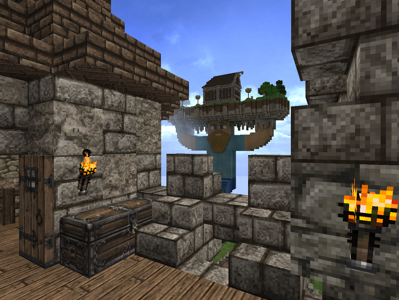 То, что давно обещал. Экскурсия по Цитадели Королей, часть первая. Однажды холодной зимой, прогуливаясь по Меровии прошлого, набрёл я на этот замечательный вид. И подумал: - А ну-ка загляну я сюда, да не просто а с фотоаппаратом Гостеприимный вход с распахнутыми во всю ширину воротами, так и манит. За воротами нам открывается прекрасный вид внутреннего двора Цитадели. Ну или точнее, кольца стен и самого донжона. Главный вход донжона скрывает за собой... канцелярию! Ну да, а как же без неё, не одному же королю носиться и разбирать жалобы горожан (Тро снова бегал по городу и ловил невидимого попугая; гномы копали, копали и докопались; разбойники попытались ограбить Алероя, и сами оказались должны), и предложения (построить баню, построить баню, построить кондите... ой, т.е. баню с услугами массажисток). В другую сторону вход на склады, забитые доверху (хотя можно было бы ещё больше). Сейчас они пусты, а склад частично разместили под ратушей, частично у меня в доме, частично во дворе Цитадели, где сундуки свалены в кучи. Во сколько всего! Хм, что там слева такое? Железо! Золото! Изумруды! Алма... ой! Нет, нет там никаких алмазов =) (уже нет) Через склад можно пройти прямо в кузню, где вовсю кипит расплав шлака в горне. Мм, сундук сбоку, одинокий... интересно, что там? Ой! Королевский банк! Продолжаем экскурсию. Спускаемся глууубже... И находим золотой слиток! Подпись на древнемеровийском языке гласит, что этот слиток обозначает вход в Королевский Золотой Резервный Фонд! Ну да, вот он. КПП, охраняющий рычаг гермодвери. Суровый гермозатвор, всаженный прямо в скалу. А за ним мечта дракона. Хм, ну эту картину вы уже недавно видели. Правда в другом текстурпаке, но не суть, это ЗОЛОТО! Можно даже потрогать. Вроде настоящее. Как-то внезапно телепортируемся снова в канцелярию, и идём наверх! А там... Гобелен! Он рассказывает историю Меровии, правда язык древнемеровийский, но Ангвар уже переводил эти мудрые буквы, принадлежащие, видимо, перу короля Соула (хотя Мыш не менее пафосен). Сбоку проход с лестницы на второй этаж донжона. Что это? Ангвар предположил о столовой или трапезной. Какой столовой? Так тут рядом казарма стражи. Здесь и живут воины, хранящие незримо покой королей. Поднимаемся ещё выше, и нашим глазам предстаёт... Тронный зал! Надо сказать, по тем временам вполне прилично. Изумрудный и алмазный троны Меровии. Изумрудный вроде как был Сурисо, алмазный - Соула, сейчас изумрудный принадлежит Королеве Киперд, а алмазный Мы.. ой, Сурисо. Наверх ведёт огромная мраморная лестница. (Кто сказал кварц? Это мрамор!) С высоты всё это выглядит эпично. На этом, первая часть Путешествия завершена. Вторая будет скоро... наверное. Там вы, в том числе, узнаете историю выбитого стекла в окне ванной комнаты.
