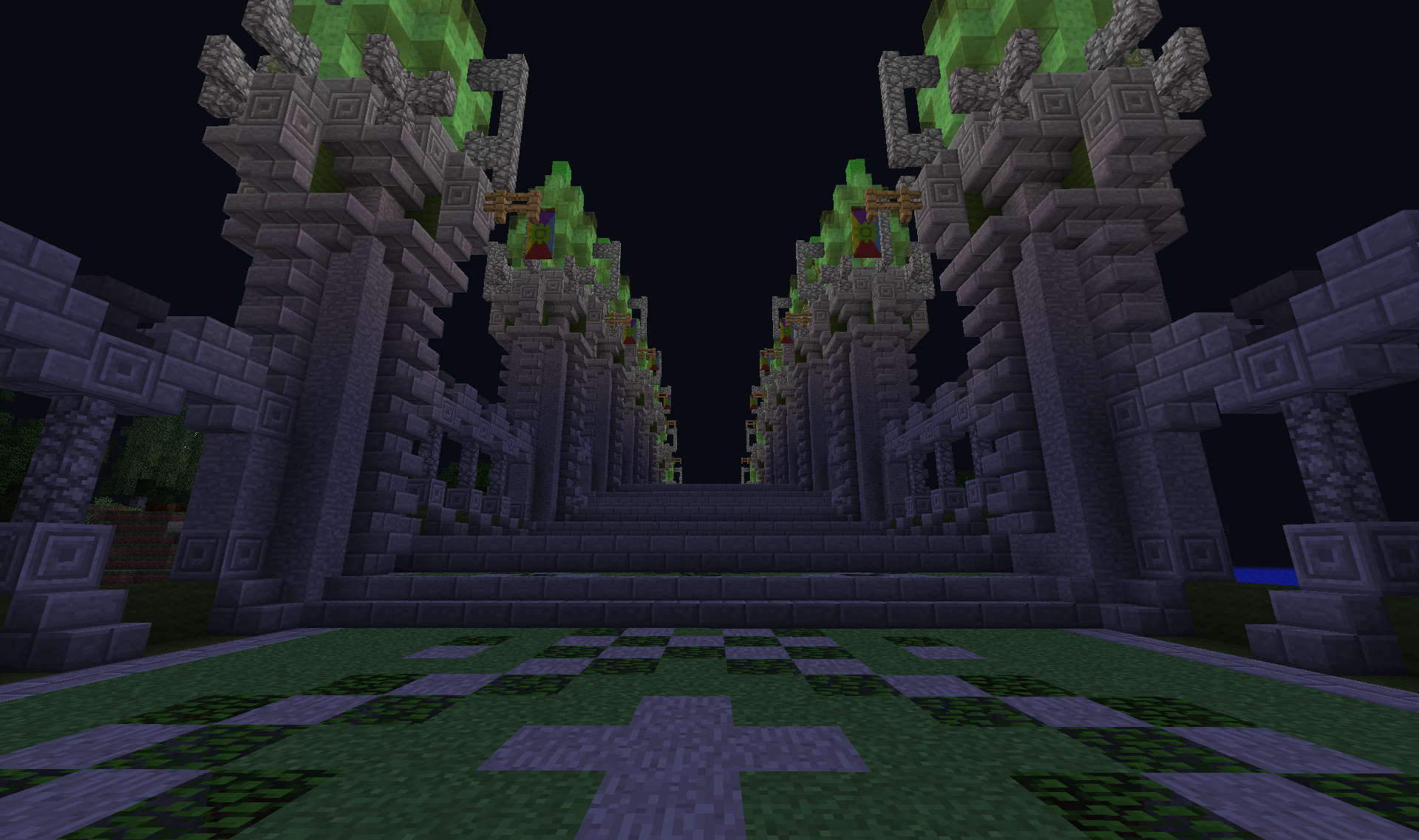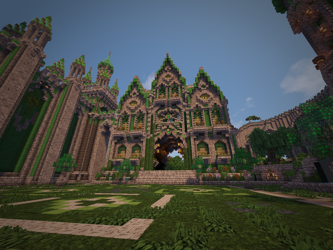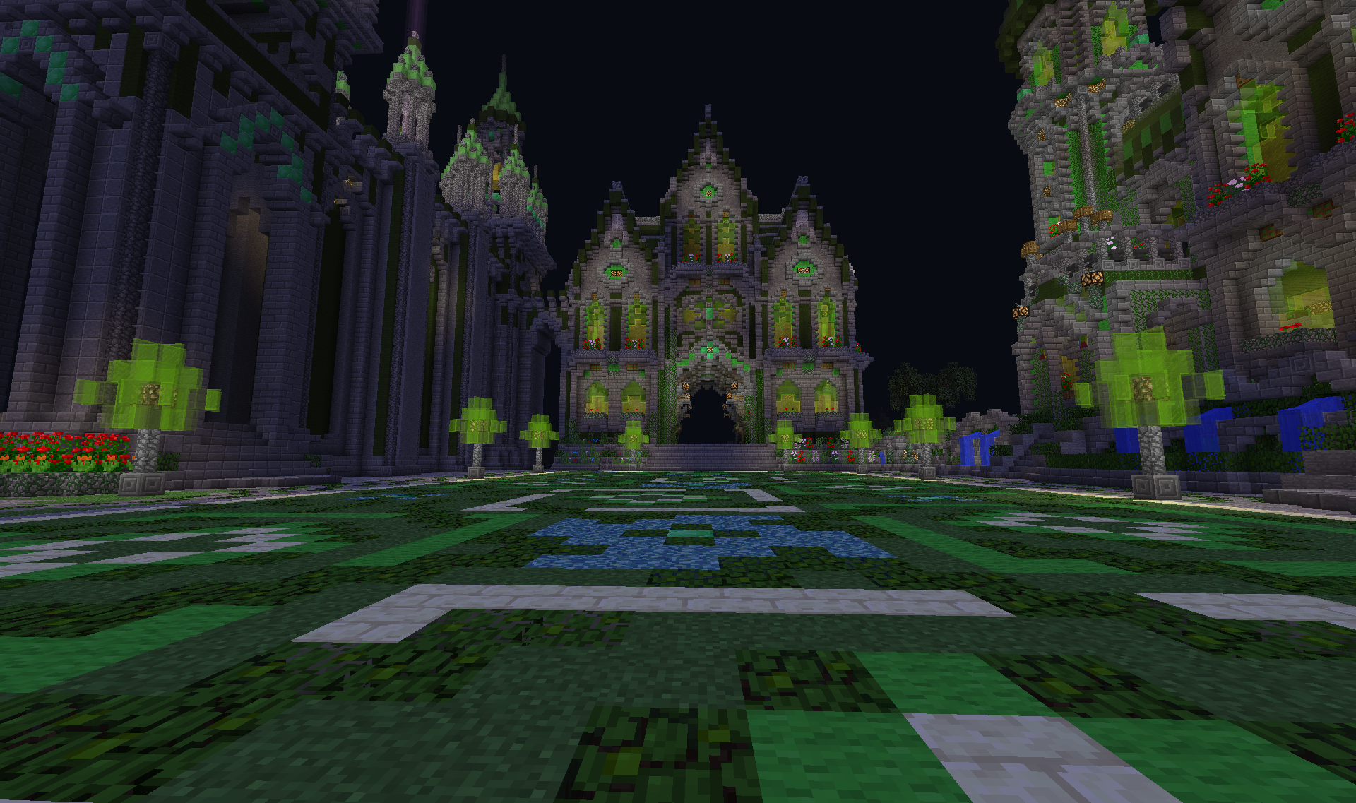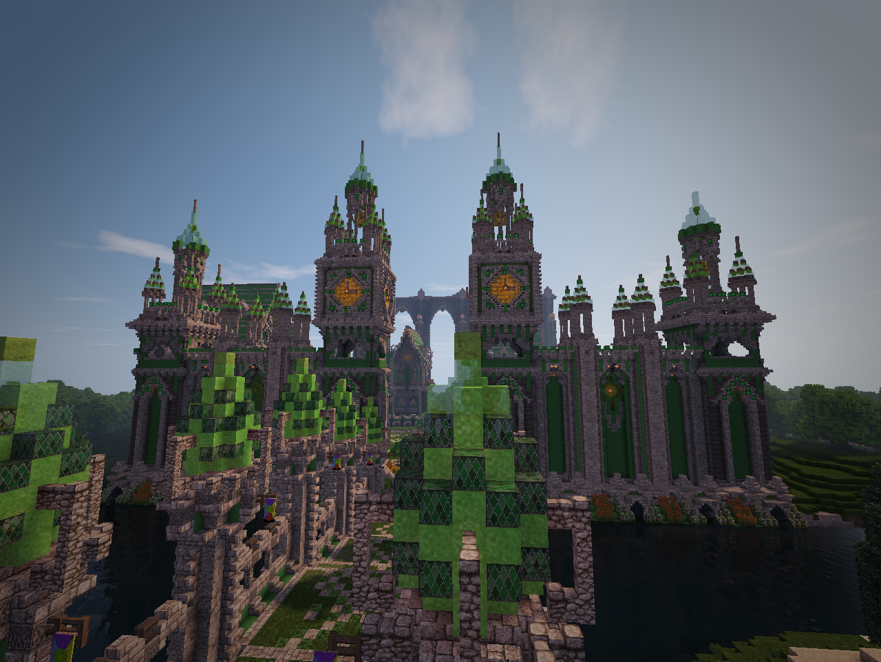 В Изумрудном городе. Давайте порадуйтесь его строителям, что за непродолжительное время возвели основу для городского ансамбля. Спойлер Приходите в гости! Изумрудный портал на спавне - и вы магически окажетесь в царстве камня и зелёного. Здесь всегда рады гостям А ещё здесь играют Чижика!