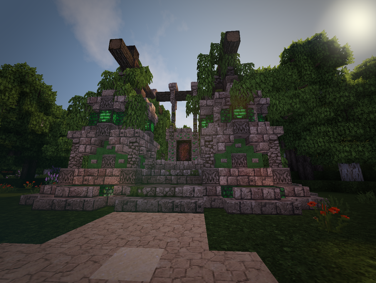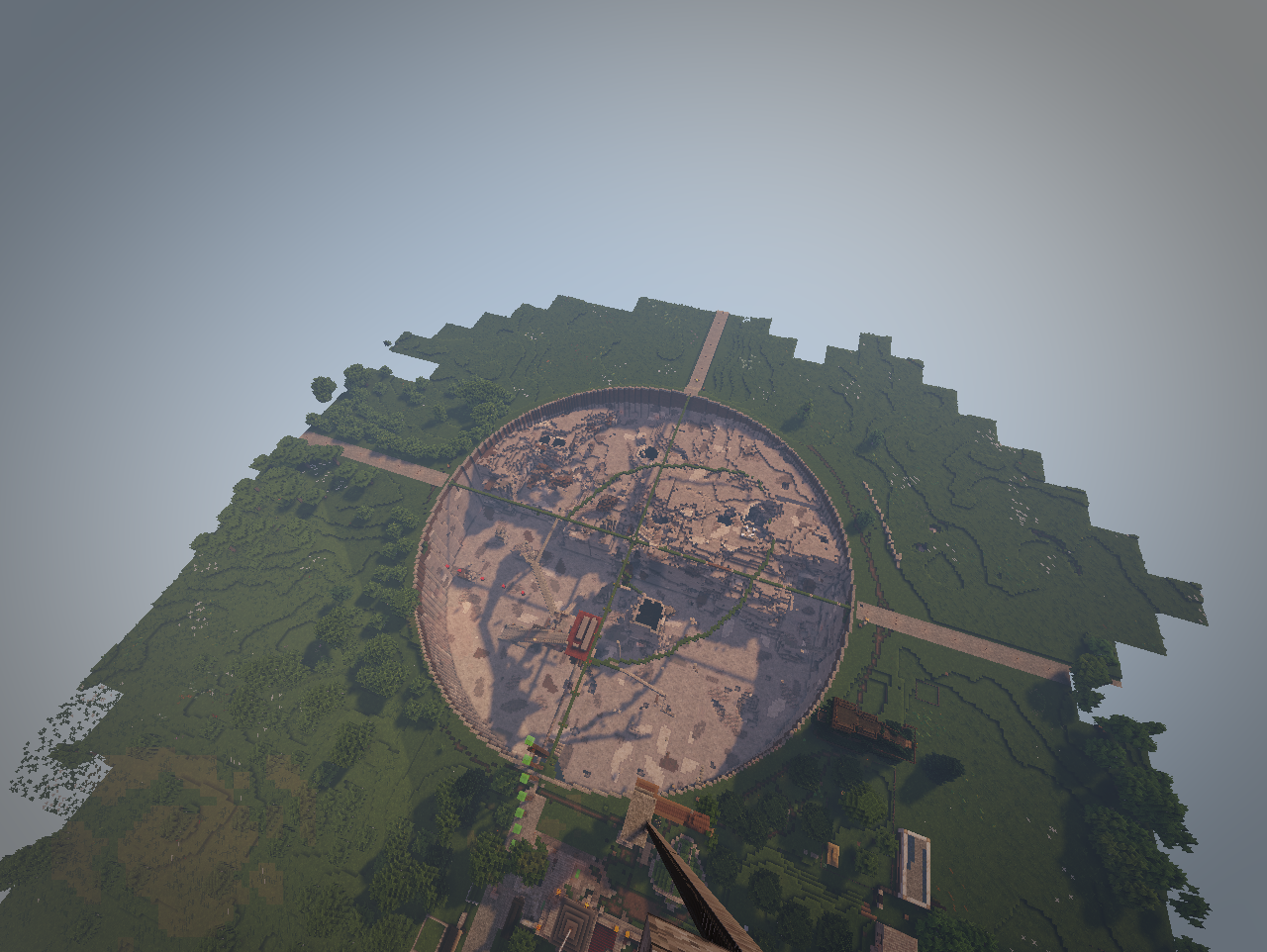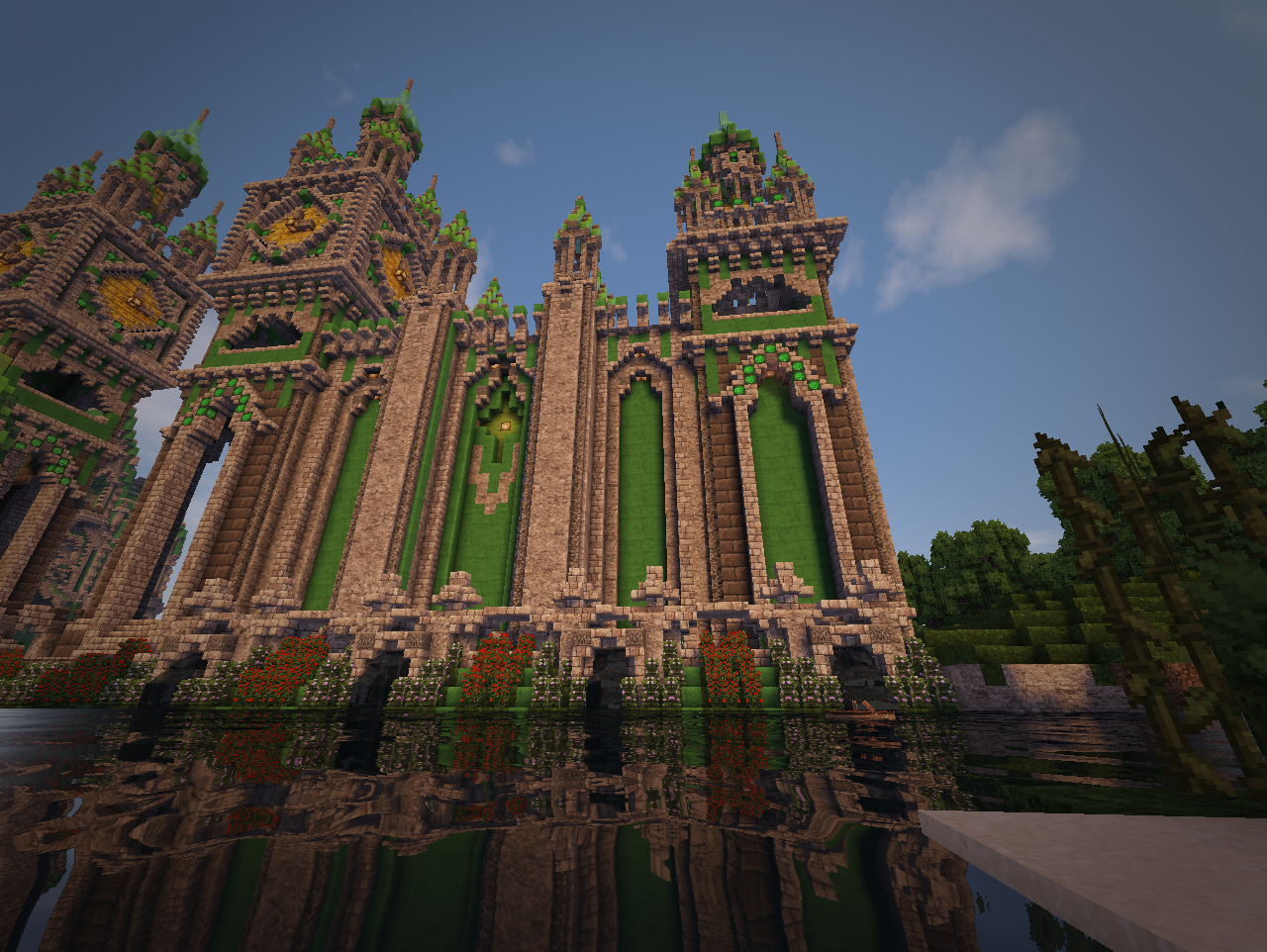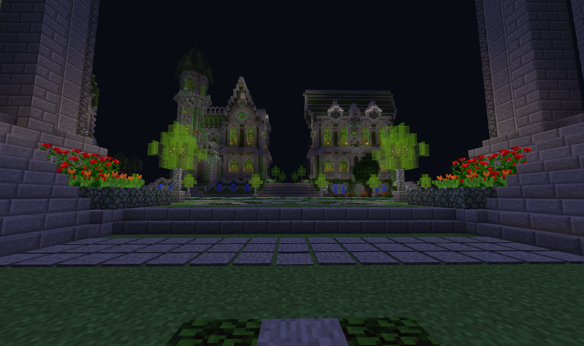 В Изумрудном городе. Давайте порадуйтесь его строителям, что за непродолжительное время возвели основу для городского ансамбля. Спойлер Приходите в гости! Изумрудный портал на спавне - и вы магически окажетесь в царстве камня и зелёного. Здесь всегда рады гостям А ещё здесь играют Чижика!