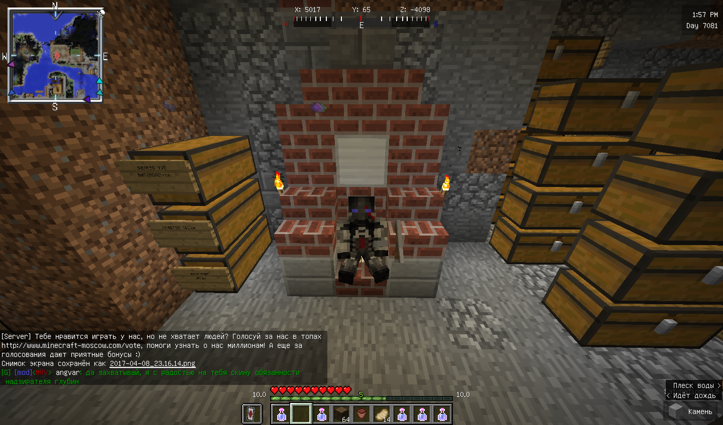 Из старого всякое разное... всё с 1.8 Спойлер Прощание с Цитаделью Королей - через несколько дней её уже не будет Толпа меровийцев и хоббиттсы копает Великий Андуин (для Осгилиата) Моя самая первая самостоятельная постройка в Меровии (не считая своего подвала и балкончика) Послание от Овермона (где-то валяется у меня его оригинал) Светоносная Тингилья Торжественная процедура закладки Замка-Без-Имени без главного заказчика (первый камень Ира, второй я, третий Флюк) Летающий Белка Первый день без Меровии на 1.8 (её утром этого дня перенесли на 1.10)