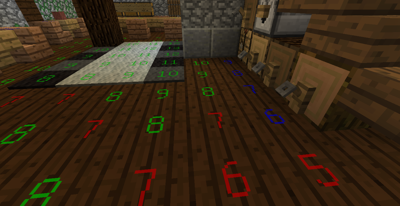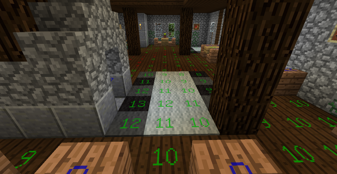 Очевидно эти цифры означают степень освещённости блока. =) Что нажала - зависит от установленных у тебя модов. Если не ошибаюсь, в ванильке такой примочки нет.