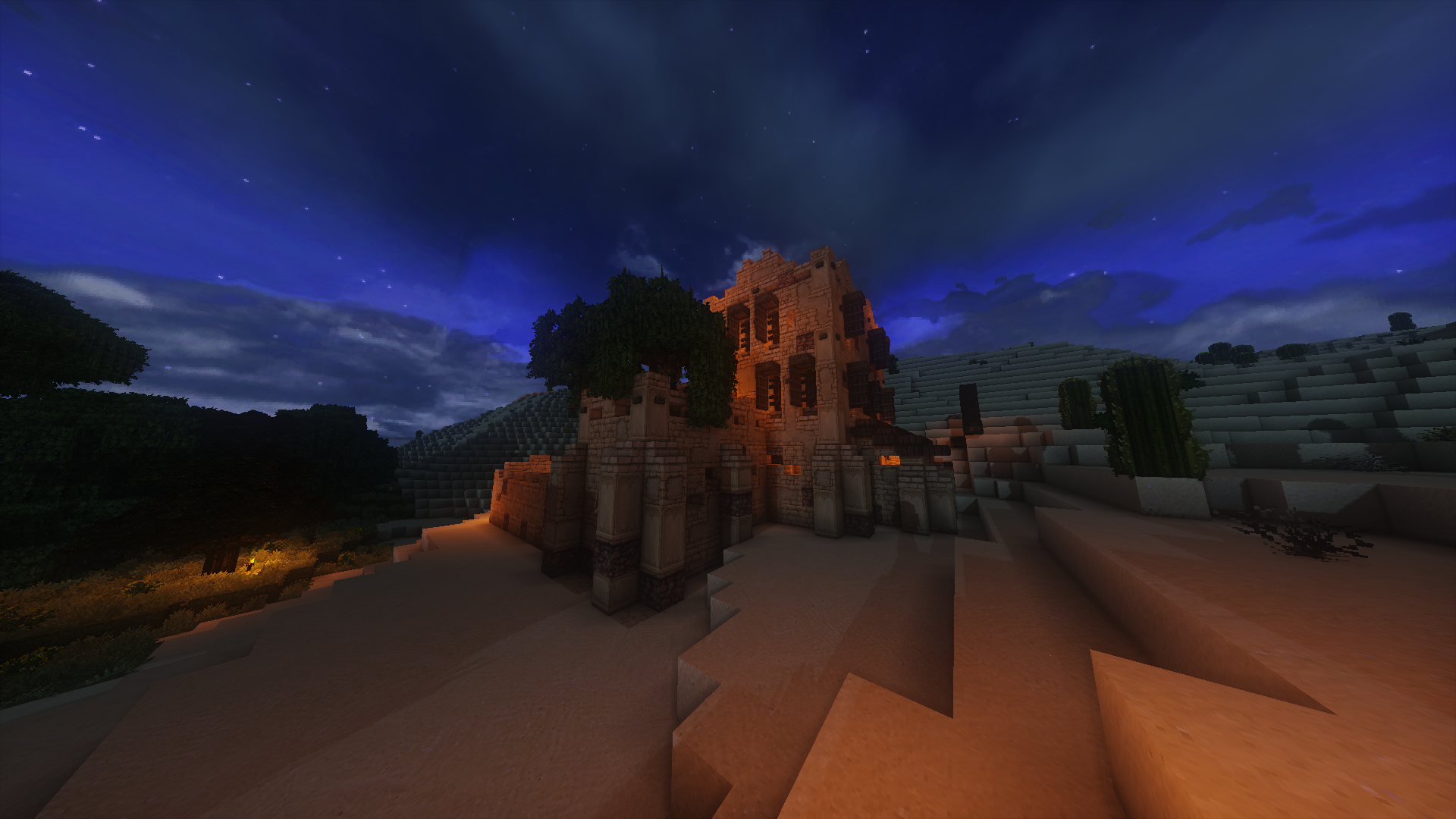 И чтобы быть совсем уж честным, готической архитектурой в кубаче занимался года наверное с 2014-го, если не раньше. Собор я и полностью свой, с нуля, потихоньку клепал, скринов чутка кину. Но долгая мучительная доработка надоела и тот собор остался лишь в виде секций и частей. Новая готическая стройка то ли замка, то ли собора, фиг поймёшь, была начата на основе наработок прошлого собора через полгода и продвинулась заметно, но снова встала из-за кризиса концепции и активного участия в постройке Меровии. Кусок среднокрестья первого собора, итоговый. Текстуры ещё старые, John Smith. Вид на уже замкособор, тоже JS текстуры. И оно же в Conquest. В результате когда я недавно попробовал снова собрать из частей собор то понял, что устал окончательно и не завершу его никогда. Вспомнил про ту постройку Рагнара Ле Ружа (⚜ Ideal Cathedral ⚜ Minecraft Project) как лучший из всех соборов что видел, взял, снаружи подправил места которые не понравились, кое где исправил косяки, кое где сделал заново, затем внутри переработал сильно, ну и в итоге решил что а почему бы не украсить любимый сервер? И украсил.