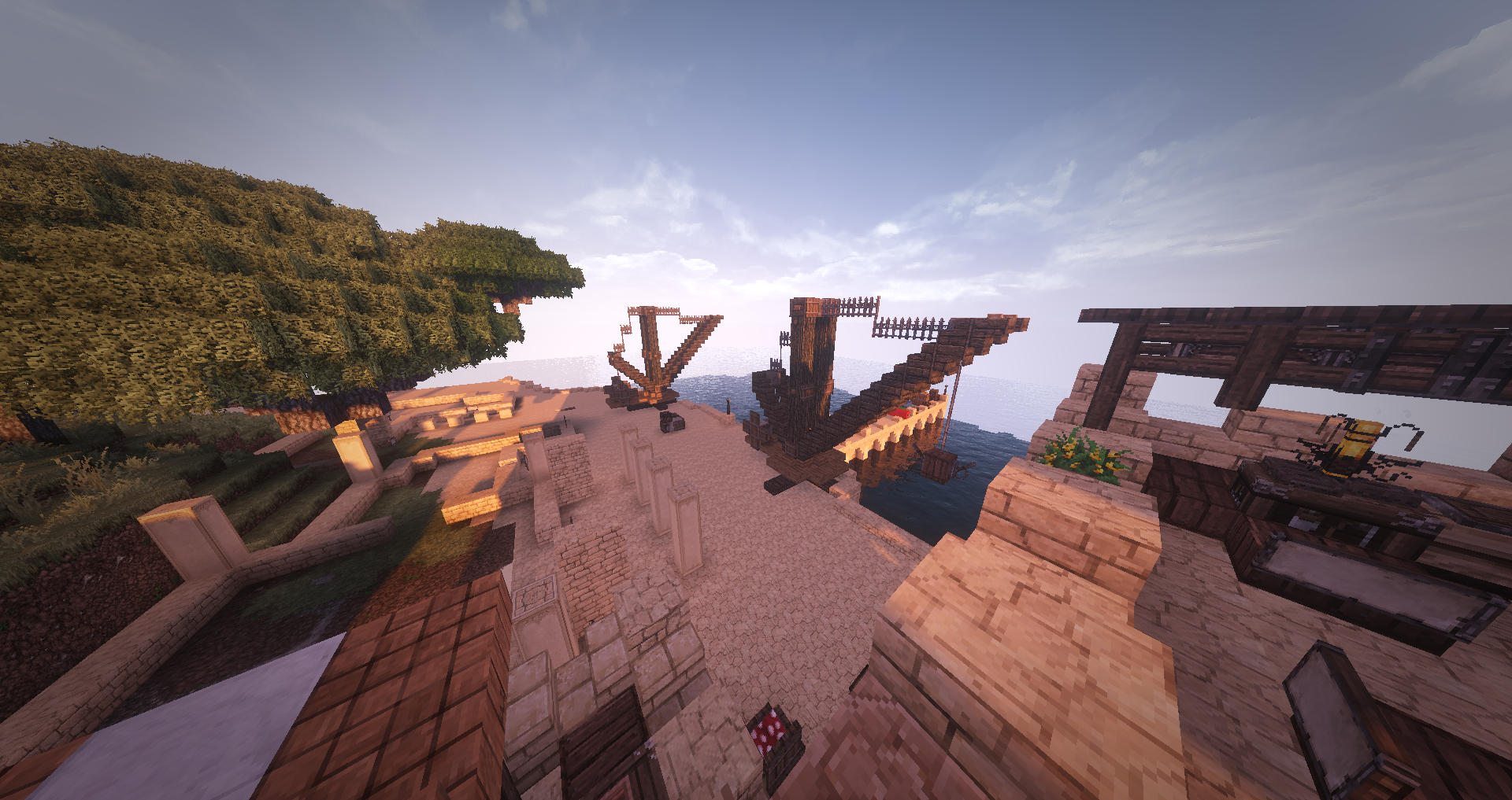 Всем снова привет Продолжаю показывать прогресс, скоро, может и в тему с городами переползу Прошу прощения, что много, но очень хотелось показать :blush: прибыли на место кто-то привез ковры, но кораблей не видать... невдалеке видны краны кран поближе первое, что хочет прибывший путник - отдохнуть и выпить, а вот и таверна под аркой столики, можно сесть в тени и вытянуть ноги входим в таверну подходим к барной стойке сели за самый большой стол на крыше таверны организованы посадочные места вид на порт с крыши балкончик с навесом вид с этого балкона в таверну комната хозяина таверны пока что самая высокая точка в поселении старые домики (бедный район) - скоро под снос а пока можно насладиться атмосферой вид на таверну и порт издалека