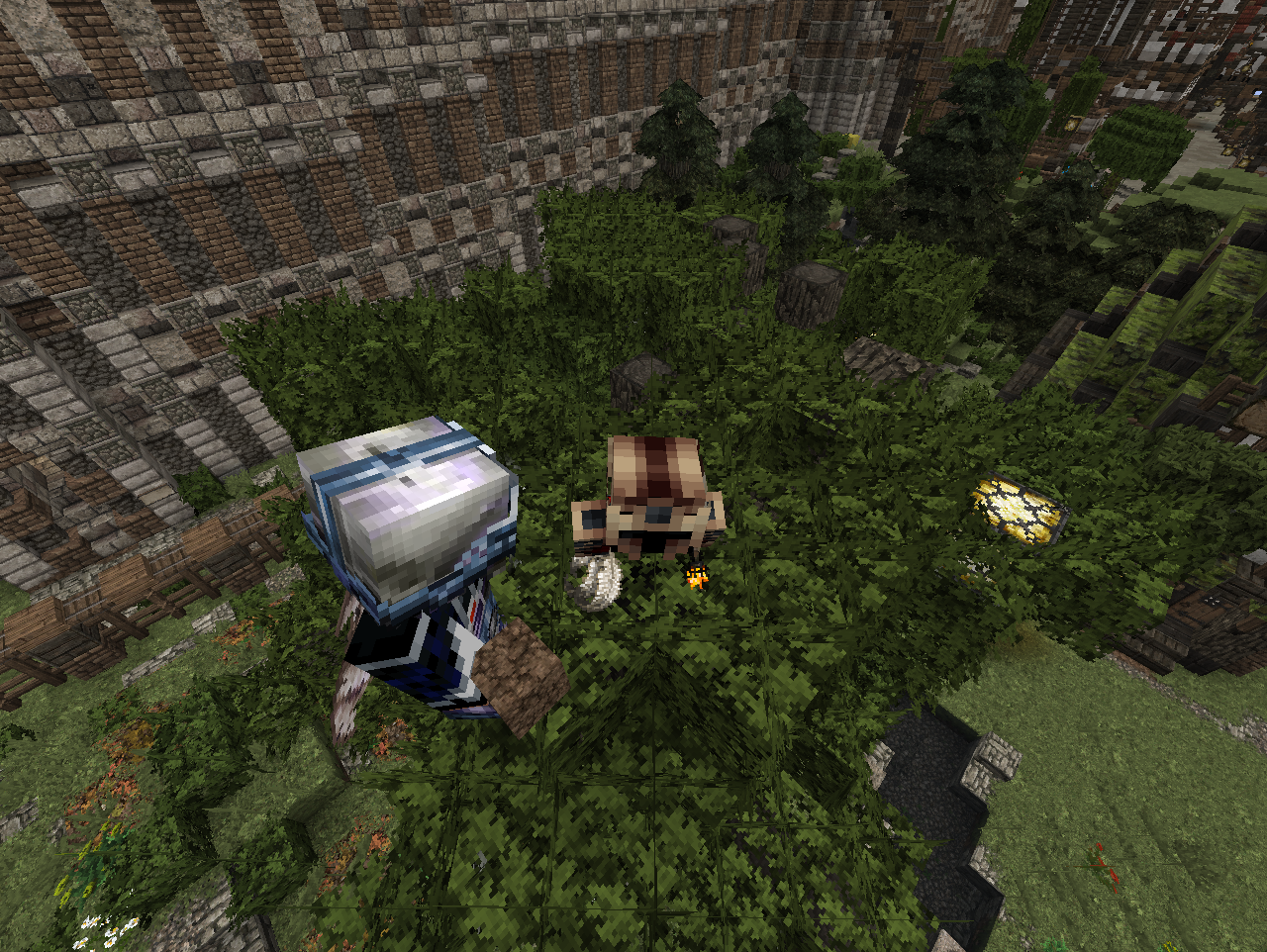 Сглючило прекрасно - летел на элитрах, прошёлся впритрку к земле и влепился в здание, после чего застрял на земле в положении полёта. Элитры снял, естественно, чтобы не тратились. Телепортация модератора не помогла, поэтому заскринил себя и перезашел.