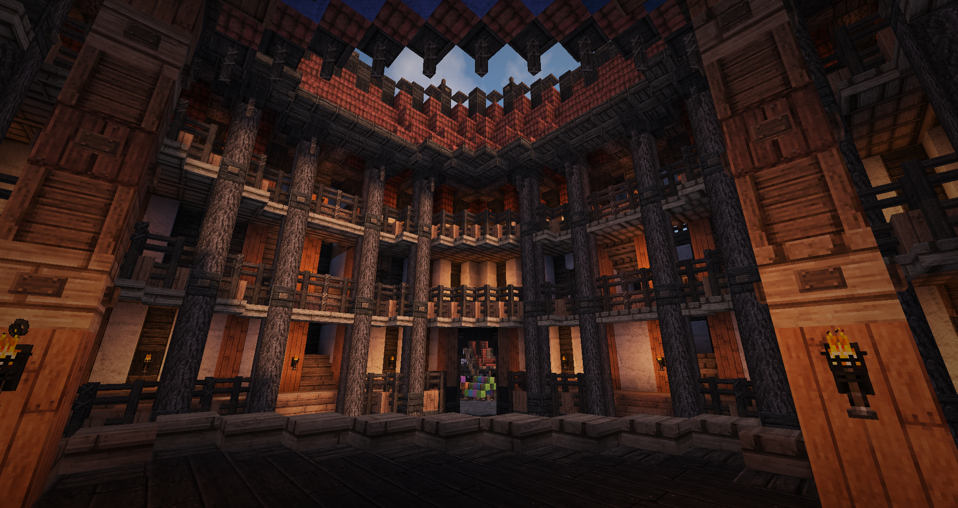 Квартал мы снесли в 2017 году, поскольку вот совсем никак не вписывался. На его месте образовался зелёный пустырь, куда воображение Сурисо ставило театр. Задумка воплотилась в каркас круглого сооружения... затем ждала год моего вмешательства и доделывания, затем ещё полгода ждала, когда наконец, соизволю закончить - построить домов штук пять, облагородить всё, и так далее.