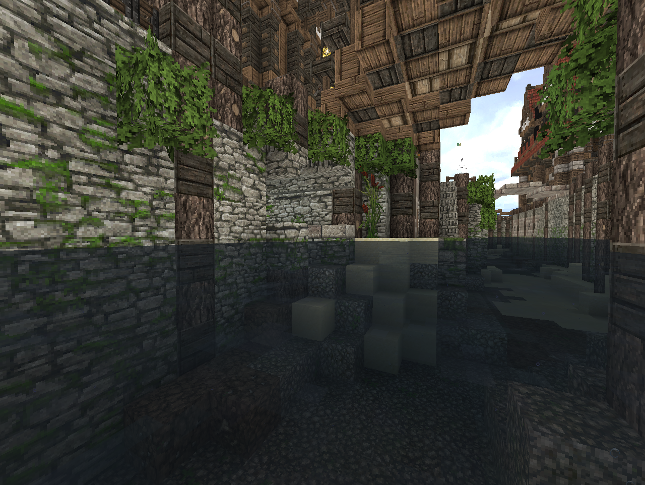 Доброго времени суток, уважаемые читатели! На этой неделе в Меровии накал работ снизился, но не слишком значительно, так что город живёт и развивается. Закрываются пустые места, доделываются всякие старые дела... а также наконец перешли в стадию подготовки некоторые старые проекты, что уже давно задуманы, но не воплощены даже в креативе. На прошлой неделе закрывались дела корабельные, на этой же почти всё связано с подземной частью. Осторожно! Как всегда, много иллюстраций! I - Мория, Мория Подземелья замка практически достроены. Вернее, скажу так - они достроены в той части, что воплощена в творческом режиме. До окончательного их завершения ещё далеко, планов много, но времени и настроения сделать их зараз, увы, нет. Тем более ещё дамокловым мечом висят подвалы библиотеки, которые даже спроектированы, но желания браться за них до сих пор нет. Железная дорога Ратуша-Замок Достроенная на этой неделе часть II - Венецианские дела В эпоху 1.8 городские каналы вступили как выложенные булыжником канавы строго прямоугольного сечения, да ещё с кривой заливкой воды, из-за чего на 6 блоков глубины, самый верхний являлся источником, а остальные пять образовывались течениями. Что давало неимоверные лаги на слабых машинах. Проблему воды и скучного дна решили одновременно, сначала осушив все каналы, затем углубив и засыпав дно песком, гравием и землёй, а затем залив нормально, послойно. Результат был хорош. Но что-то не хватало. И вот Ангвар в одну из переделок своей мини-пристани у дома, вспомнил про замшелые блоки - каменный кирпич и булыжник. На тестовом участке канала вся подводная часть стенки и некоторые блоки с первого надводного слоя, были заполнены замшелым булыжником. Результат получился хорошим. Эту идею одобрил Король Сурисо, но в те времена активно шла стройка горы, и замшелого булыжника имелось не то чтобы много... Идею отложили, потом, как и следует, забыли. Пока не вспомнили на днях и не решили добить, раз в городе наступила эпоха доделки всяких мелочей вместе с ленивой стройкой крупных проектов. Вид под водой с осветлением Одна из мини-пристаней Канал у таверны Рядом с главной площадью III - Жу-жу-жу Предместья являются одним из самых молодых районов острова - их в основном строили на эпохе 1.8, но... не до конца. Остался ряд белых пятен, из-за которых план с сервером до сих пор не сходится полностью. Одним из них является, а точнее - являлся, дом пасечника и собственно само помещение, где происходит колдунство откачки из сот и сепарации мёда. Для этих целей, как вы помните, недавно (недели две назад) и спроектировали здание, похожее на увеличенную хижину. Долго оно не пролежало, настала пора строить. Кроме собственно дома, также был выстроен мост над небольшим потоком воды из одного озера в другое. Мост и стройка пасеки Пасека в процессе строительства (слева) и медоварня (справа) Ира keeperd трудится над крышей. Почти готовое здание в ливень Вот теперь точно готово! Красивый вид из окна второго этажа на луг IV - ...ПещераУжас Именно под таким названием фигурирует один из самых масштабных городских проектов. Его целю является превращение гигантской пустоты в горе в нечто... красивое. Иллюстраций не будет. Хотя... а кто это тут выглядывает из тумана? V - Сравнение Как-то меня спрашивали, а чем таким отличаются шейдеры от стандартной картинки кубача? Нет, что оно кр