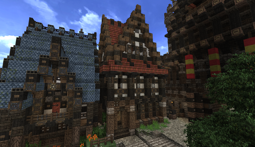 Всем привет! Свежая порция недельных новостей с одной из самых упорных строек сервера. Плюс, как мне кажется, у нас уже сформировался неплохой, естественный формат, что-то вроде модных ныне devblog'ов. Но, если у вас есть какие-то пожелания по подаче и содержанию, то смело пишите, предлагайте. Впрочем, к делу... I - Стройки на сервере За неделю Ира (keeperd), Fluke, angvar и остальные помогавшие трудом и ресурсами, очень здорово продвинулись с серверным воплощением Меровии. Они закончили 2 передовых укрепления: "выносную башню" и барбакан. Более того, Ира была так добра и бдительна, что даже исправила кучи моих... маленьких ошибочек. За что ей отдельное спасибо. Еще, конечно, есть шереховатости и технические элементы/штуки в процессе, но представление дает. И это только малая часть грядущего замка. Если все пойдет хорошо, скоро начнем возводить главные ворота и элементы стен. Было сделано кое-что и в более скромном, но очень нужном жанре -- детализации города и окрестностей. Ангвар, известный среди меровийского теневого мира как "король подземелий", продолжает работу над водостоками. Выходит весьма атмосферно. И безопасно, если, конечно, вы не будите забираться слишком глубоко... Немного любви и получил Пруд Висельников (или он как-то иначе назывался?) у ворот. Теперь тут растут камыши. II - Тем временем в креативе За эту неделю я скромно продвинулся с замком (тяготы реала). Из крупного -- сформировал (не считая пары спорных мелочей) ворота с внутренней стороны. В остальном большей частью работал с "текстурированием" и маленькими деталями. Но, после очень долгой паузы, отвлекся и вернулся к домам. Закончил парочку неподалеку от университета. Классический нео-меровийский стиль (может быть, с легкими веяниями зимы 16, сложно сказать). У нас вернулся DoctorDisel из желающих присоединиться, а так же FoxSusRoot давным-давно хотел дом (если еще хочет), в любом раскладе, дома теперь ждут двух своих владельцев. Подробнее обсудим в теме города. Труды с домами натолкнули меня на ряд давно вызревавших мыслей, но о них в следующем, отдельном пункте. III - Вещи концептуальные За время своего существования Меровия выросла из многих своих ошибок и проблем (иногда -- ужасов). Все трудно и перечислить - проще посмотреть. 2013 Но, даже спустя годы прогресса, оставалась одна вещь, что продолжает огорчать -- скверно сформированные улицы. Отчасти это из-за множества перестроек, где ряд зданий жалко было сносить и они оставалось на старом месте, отчасти из-за моей старой моды оставлять между домами зазоры (после неудачного опыта их совмещения), часть -- просто ошибки. Общее впечатление смазано, скорее группа отдельно стоящих домов, чем реалистичное (относительно) городское пространство. В итоге хотелось бы добиться более логичных, четко сформированных зданий и примыкающих домов. Поэтому все новые будут строиться с учетом этой концепции, а старые, по-возможности сил и времени - перестроены/уплотнены. Во многих случаях хватит небольших пристроек или смычек, от которых здания визуально не пострадают, а владельцы даже получат новые площади. Да, будет непросто и долго, но нужно. IV - Познавательный бонус В ходе стройки я постоянно стараюсь подсматривать реальные образцы, даже если не для копирования (я все равно добавляю слишком много своего, фентезийного), то для вдохновения, для формирование некой картинки. Один