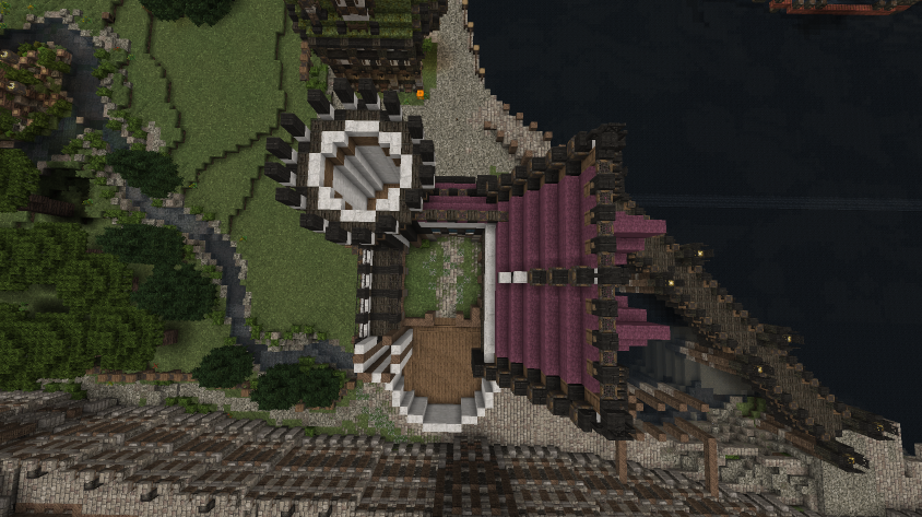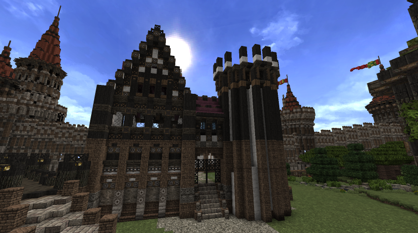 Фасаду, конечно, пока еще много чего не хватает, но будем над этим работать. Справа будет еще один вход в парк (который, правда, как и 95% вещей в Меровии так же требует дополнительного внимания и улучшений).