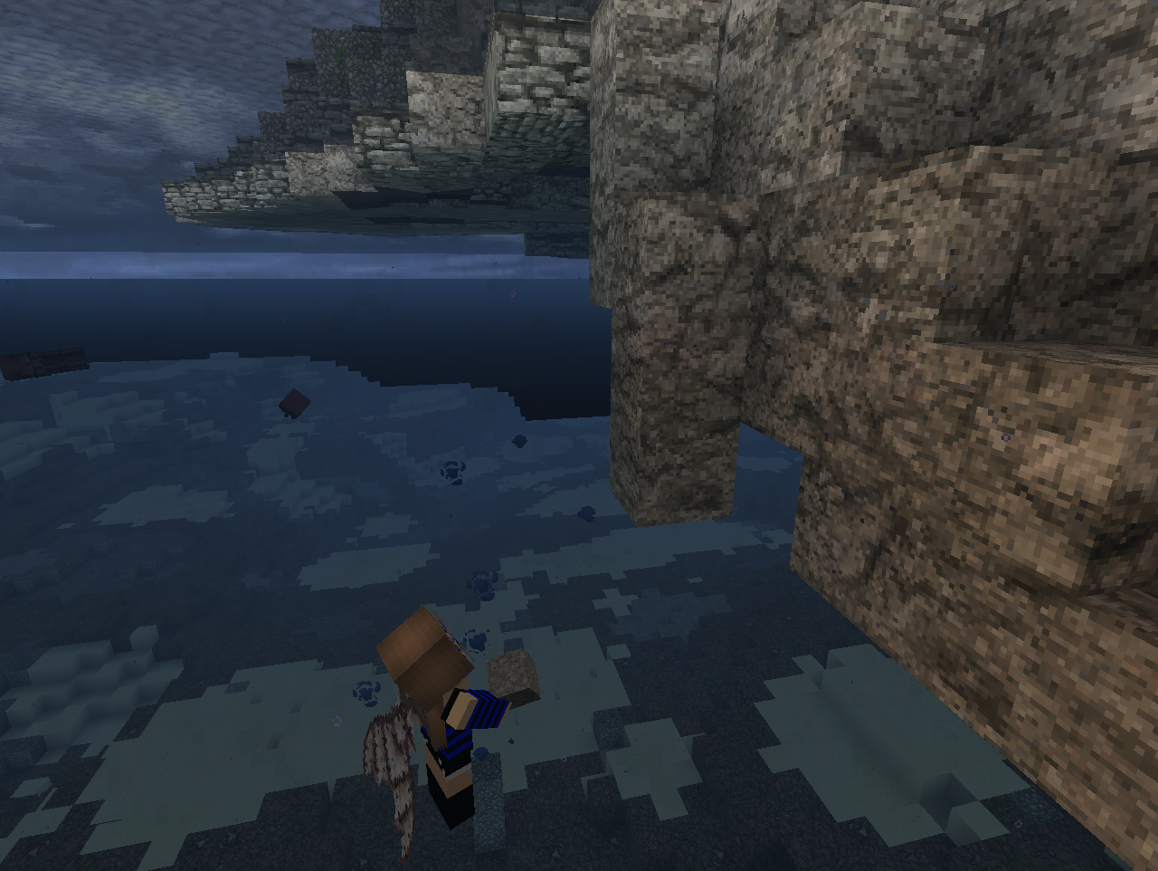 Доброго времени суток, уважаемые читатели! В сегодняшнем выпуске вы узнаете о том, чего мы строили, будем строить и что проектируем. Также будет сделано некое важное объявление. Осторожно! Как всегда, много иллюстраций! I - Подводные работы Подведение тверди под меровийские земли снизу продолжается, после того как на западе был сформирован контур берегов над водой, их продолжили и под водой. Археологических открытий никаких не совершили, а просто потрудились. Хотя, нет, что-то под водой мы нашли. Понять бы только, чего это такое? II - Благоустройство Однажды, устав от житейских дел и проектирования бесчисленных подземелий, Ангвар прогуливался близ морской таверны и узрел нечто непотребное. Остатки старого тоннеля местного метро в воде. Разумеется, он мигом взялся за кирку и вскоре каменные развалины были снесены а само место надёжно засыпано гравием. После чего архимаг включил растекание воды. Это событие осталось не проиллюстрировано из-за поломки редстоун-фотокамеры. Зато ею было запечатлено нечто иное. На обратном пути Ангвар заметил страшно некрасивый перепад в два блока. Делать было нечего, пришлось снова потащиться в подвал за булыжником, благо до него буквально два шага, и вскоре на месте невнятного проулка была проложена превосходная мостовая. В ходе работ над которой Ангвар провалился (как всегда) под землю в очередную дыру. Долго ли коротко, но обнаружилось, что у соседнего дома, пустующего не один год, отсутствует подвал. Что же пришлось делать главному меровийскому строителю этих подвалов? Правильно. Проделать дыру к себе и оттуда натаскать всяких стройматериалов, после чего соорудить нечто, похожее на его собственный подвал. Только поуже. Ещё одним благим делом стало приведение в порядок ближайшей набережной, и мостовой над подвалом давно снесённого дома Торговой компании Алероя. После чего наш неутомимый строитель вспомнил про одно дело, что во время стройки библиотеки ему поручил Его Величество Сурисо XIV. Соединить библиотеку и таверну красивой набережной. Кирка крепка, элитры наши быстры, и вот висящая уже не одну неделю задача была оперативно решена. А далее... Далее Ангвар вспомнил про то, что Сурисо ему говорил ещё и о необходимости заполнить небольшое пустое пространство на главной площади, между одной из палаток и проходом к одному из мостов, "хоть чем-то". Этим "чем-то" стал оформленный в виде небольшой же палатки общественный эндер-сундук и верстак (в отдельной сабзоне). Но и на этом его труд не прекратился. Оказывается, в департаменте по дорогам, лежала уже не один год заявка на переделку какого-то древнего столба на развилке главных дорог в предместье, в указатель направлений. Пришлось взять с собой таблички, цемент, гвозди и отправиться к месту проведения работ. Теперь гости нашего острова могут узнать, куда можно идти! (сам столб был построен тогда же, только тсс, вы этого не слышали, он древний, и точка) Что там ещё? Ах, да, были удовлетворены пара запросов на снос всяких мелких остатков древних домов, проведена редстоун-линия от музыки под главной площадью до ратуши (де-факто её провели ещё в начале 2016, но де-юре только сейчас), кроме этого ряд сундуков, оставшихся от строительства библиотеки, был перенесён в наш временный склад (недолго ему осталось быть временным, но об этом позже). Все эти без сомнения великие