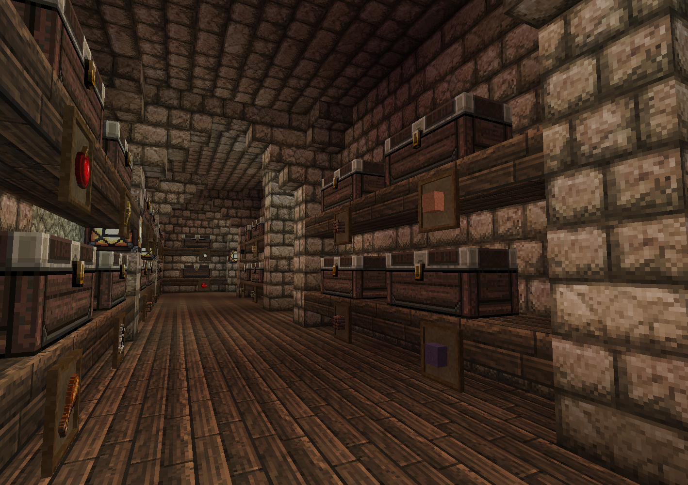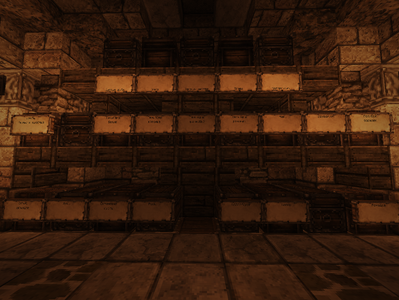 Доброго времени суток, уважаемые читатели! Сегодня не совсем обычный выпуск, впрочем судите сами. Только не очень строго ;) I - Логистика Логистика являлась всегда главнейшей из всех проблем любого проекта, от возведения дома до электрификации всей страны и военной компании. Тысячи тонн грузов сотен тысяч наименований необходимо не только хранить, но и при этом чётко знать, где что лежит, во избежание ситуаций, когда из-за отсутствия какой-то мелочи встанет целый процесс. Хотя всем жителям кубомирья очень повезло, что в классике даже сейчас не наберётся и трёх сотен видов блоков с предметами. Вот только проблему малое количество не сильно решает. Да, всем известно, что есть на свете редстоун-схема склада с автоматической сортировкой, но она чудовищно громоздкая, ресурсоёмкая, медлительная, и самое главное, даёт сильную нагрузку и на клиента, и на сервер. Поэтому склад возможен лишь в варианте, что не автоматизирован никак. Не обошла проблема логистики и Меровию. Изначально вся деятельность в городе разворачивалась вокруг старейшей постройки, Цитадели Королей (ныне утраченной в ходе извержения вулкана). В её обширных подвалах с самого начала был организован склад, где на полках стояли бесчисленные сундуки нехитрых богатств что Истхейвена, что ранней Меровии. Это, в общем-то, логично, но стройка города отстояла от крепости на десятки и сотни блоков пути, и бегать туда-сюда было неразумно. Скоро на долю Цитадели выпало хранение ценных блоков да трофеев. А вокруг каждого строящегося здания, как грибы после дождя, вырастали сундуки, которые набивались необходимыми материалами… и которые частенько продолжали стоять после того, как дом возвели. В итоге к закату эпохи 1.6.2 ресурсы по городу оказались попросту распылены, и никто уже толком не знал, где что лежит. При этом город уже давно являлся громадной стройплощадкой, которая потребляла ресурсы тоннами, и частенько было легче добыть что-то заново, чем искать. Само собой, это неправильно, но в городе не было (и нет) того, кто будет отвечать лишь исключительно за склады. Позднее, в 1.7 ситуация ничуть не изменилась, хотя темп строек в городе и поубавился, но зато началась эра активного терраморфа окрестностей. В ходе которой королевство потребляло тысячами тонн камень, землю да булыжник. Которые традиционно валялись по всей территории. Внутри города со складами было ничуть не лучше, после сноса старых зданий оставались десятки сундуков сваленных в кучи ресурсов, из которых строили новые здания, а остатки либо постепенно растаскивали по стройкам, либо о них вообще забывали. В самой Цитадели о порядке на складе забыли напрочь, и стопки сундуков загромоздили весь внутренний двор. Ещё сборище ресурсов появилось под ратушей, в той пустоте, что заменяла ей подвал, устроили общий склад, к которому имели доступ все жильцы. Сколько забытых и неучтённых сундучков с богатствами тогда скрывалось в глубинах Меровии, не знал никто. Переход на 1.8 проблему бардака в логистике решил своеобразно, напомню, что тогда случился вайп по ресурсам, и в Меровии вообще не осталось ни одного сундука. И ситуация начала немного изменяться к лучшему, хоть и не совсем. В крепости всё в том же дворе был устроен общий склад Короны. Склад материалов для терраморфа стихийно образовался за городом, где выделяли сабы для желающих 