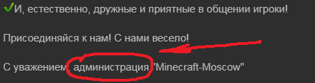 А я и не знал что RUMPELSTILTSKIN у нас в администрации ) и правила нашего сервера видимо плохо читал : Статья 6. Выдача себя за администрацию 1. Запрещено выдавать себя за Администрацию сервера/представителя администрации сервера. Во избежание недоразумений, список администрации есть в правилах сервера.