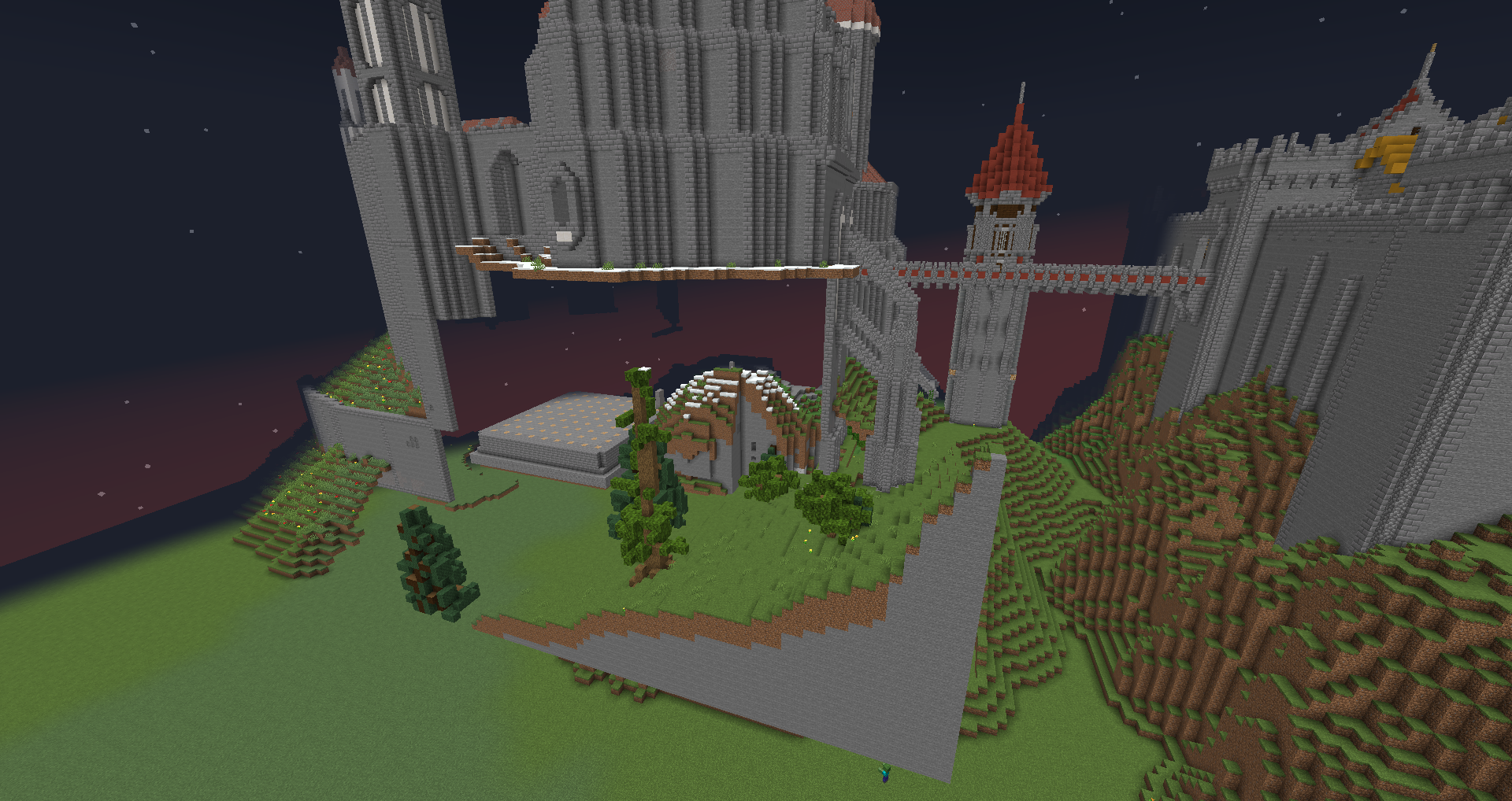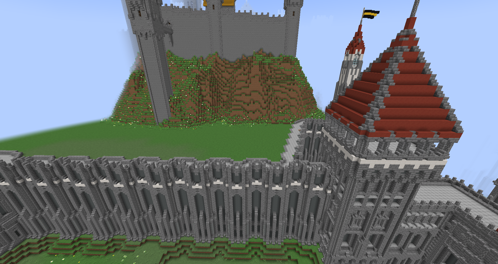 Поговорим о Фениксе. Имеем то, что имеем. Evolution с нами на одном сервере нет, соответственно, его проекта тоже нет. Но есть я, уже держащий как память остатки Осгилиата, одна штука и территорию Голдстоуна, одна штука. Намёк понятен. С проектом Эво всё сложнее. Представляет он собой огромное приподнятое плато со стенами, на котором два условных холма. На первом город-крепость в общем-то приятного для меня стиля. На втором бесконечно недостроенный замок. Хочу всё это наследие сохранить по причинам, которые уже упоминал недавно в изумрудной теме. Огромная историческая и культурная ценность. Плюс союзник Меровии, хоть и бывший. Пока я решаю, в каком виде сохраню, поскольку сама концепция огромного основания мне не нравится. Есть желание избавиться от него, и будут просто два холма, один с замком, второй с городом, но проблема в том что город внятного входа не имеет, только через замок, а замок недостроен даже снаружи (достраивать буду, но сам холм), не говоря об интерьерах которых нет... Вот такая фигня.