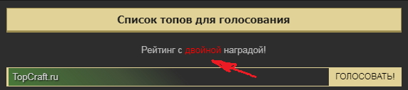Вот прошёл почти месяц как написал эту тему . Я думал что она как то сдвинет проблему закрытия одного из сайтов для голосования . Видно просчитался ( Я о том что у нас есть такой чудесный .. Магазин редкостей .. где можно приобрести то что нельзя купить за червонцы . Так вот игрок который ежедневно голосовал в течении месяца не дополучил 30 голосов ! А это цена хорошей книжки или яйца призыва . Ну если администрация упразднит покупку товара за голоса то тогда вопросов нет Но я так понимаю что этого делать никто не собирается . Вот исходя из этого вношу предложение . Сделать за голосование на сайте с двойной наградой не только награду в двойном размере червонцами но и присуждать 2 ( ДВА ) голоса за голосование на этом сайте.