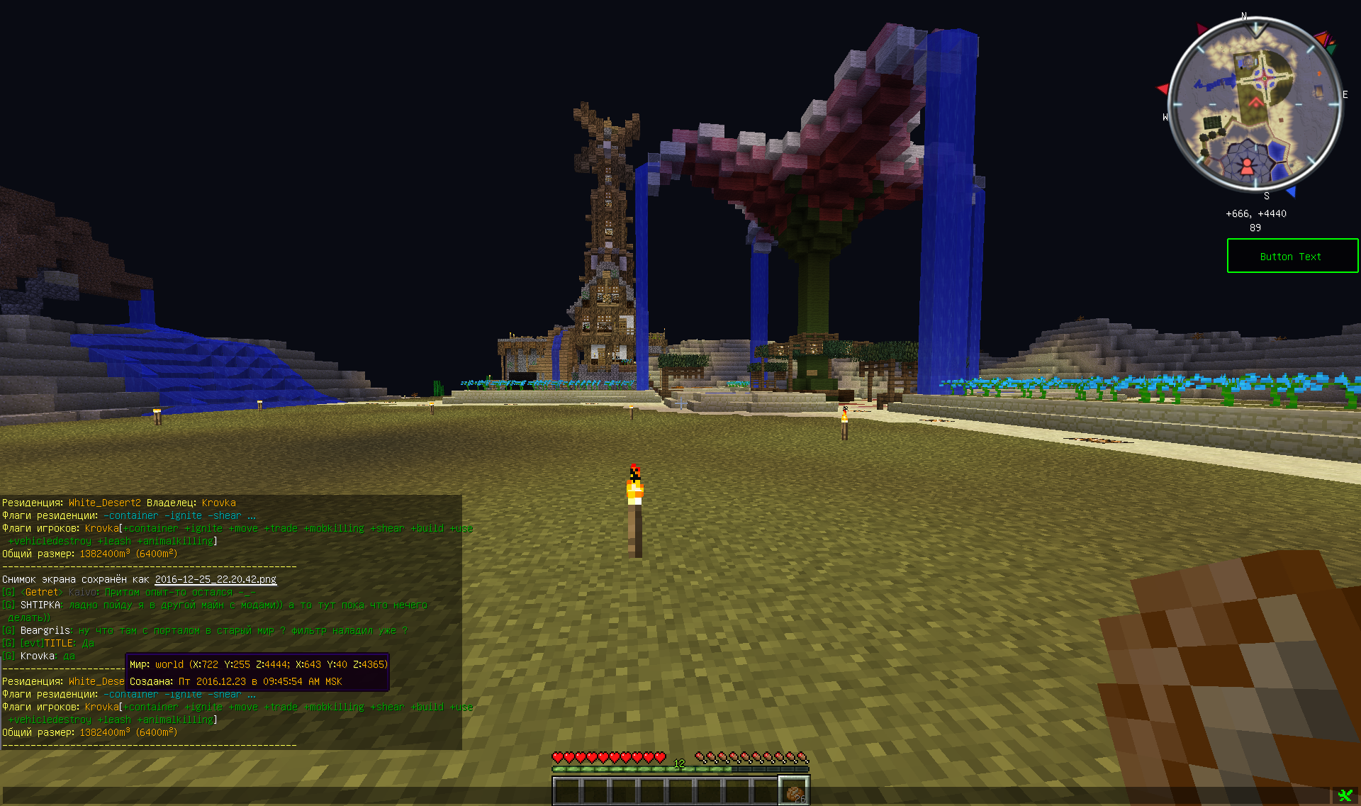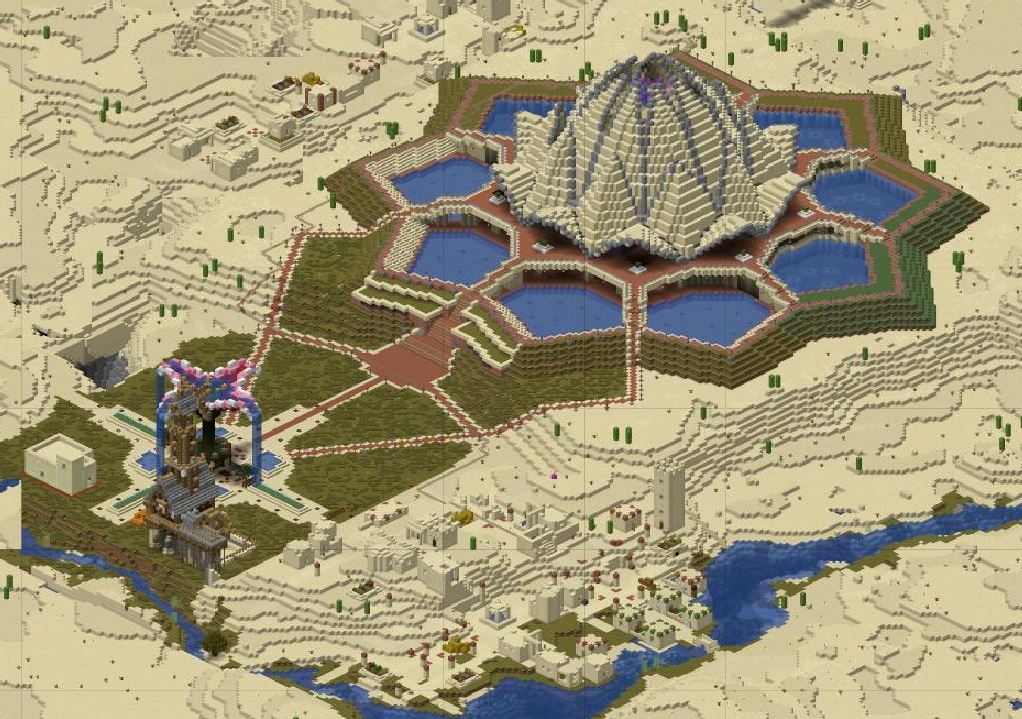Давным-давно в огромной бескрайней пустыне существовал один очень непростой народ. Люди этого народа видели то, чего не могли увидеть другие народы: джиннов, силовые линии, простирающиеся через мир, энергию и ауры, наполняющие воздух. Они верили, что существуют другие миры и в них живут высшие существа и все время путешествовал по пустыне в поисках свидетельств этих существ. Со временем их желание найти высших существа переросло в одержимость и однажды родился пророк, который предсказал что в этот мир придет высшее существо, но для этого надо построить пирамиду, которая бы собрала энергию и призвала существо в их мир. Также, чтобы открыть портал требовалось совершить множественное жертвоприношение. В общем все это я узнал из летописей, очнувшись однажды утром не в своем дворце летающим в облаках, а в совершенно незнакомом для меня мире, лежащий голым на вершине пирамиды. И никого кругом. Не знаю как у них со здравомыслием, но с математикой у них видимо туго, раз в живых не осталось никого. И сдалось вот им всем превратиться в пепел? Фанатики, одним словом. Ну что же, кругом никого. Родной замок и свита так далеко, что энергию на портал мне еще лет 100 собирать. Кто я такой и где мой дом? Ой не спрашивайте…В последнее время там полный бедлам, какие-то дураки наслушались старых легенд и стали драконов по всему свету гасить. Бедные твари уже не знали куда от них деться. Вспоминать больно. Пирамида? Ну такая себе пирамида, разве что большая, но для этого мира безвкусица. Пошла на кирпичи. Хорошо хоть эти дикари выбрали место силы с двойным спавнером, это позволило мне ускорить процесс по созданию новой берлоги. Проект был взят… а кто его знает…во сне когда-то привиделось. Чего-то там дели на что-то или не Дели. Проект начался, кстати, как раз то, что нужно что бы собирать воду в условиях пустыни. И знаете, что, со временем проклюнулся необычный цветок. То ли обилие воды, то лит сосредоточение силы, то ли ко мне когда-то прицепился в одном из миров. Кто его знает, но вымахала гадина знатно и стало еще и воду из земли выкачивать Ну а я что, я только за. Даешь первые посевы, хлеба, мельницу. Берлога строится, время идет. Ну вот и какие-то поселенцы на окраине сделали деревню. Ну что ты сделаешь, вода – главный жизненный источник в пустыне. Пробовал отгородиться, не помогает. Ладно, пусть селятся внутри А назовем все это дело городом под белым, палящим, изнуряющим, порой ненавистным, порою красным, порою фиолетовым, иногда высоким и тусклым, иногда низким и ярким солнцем. Мда.. Так себе название получается. Ладно мммм…. Пусть будет “Город Белого Солнца”.