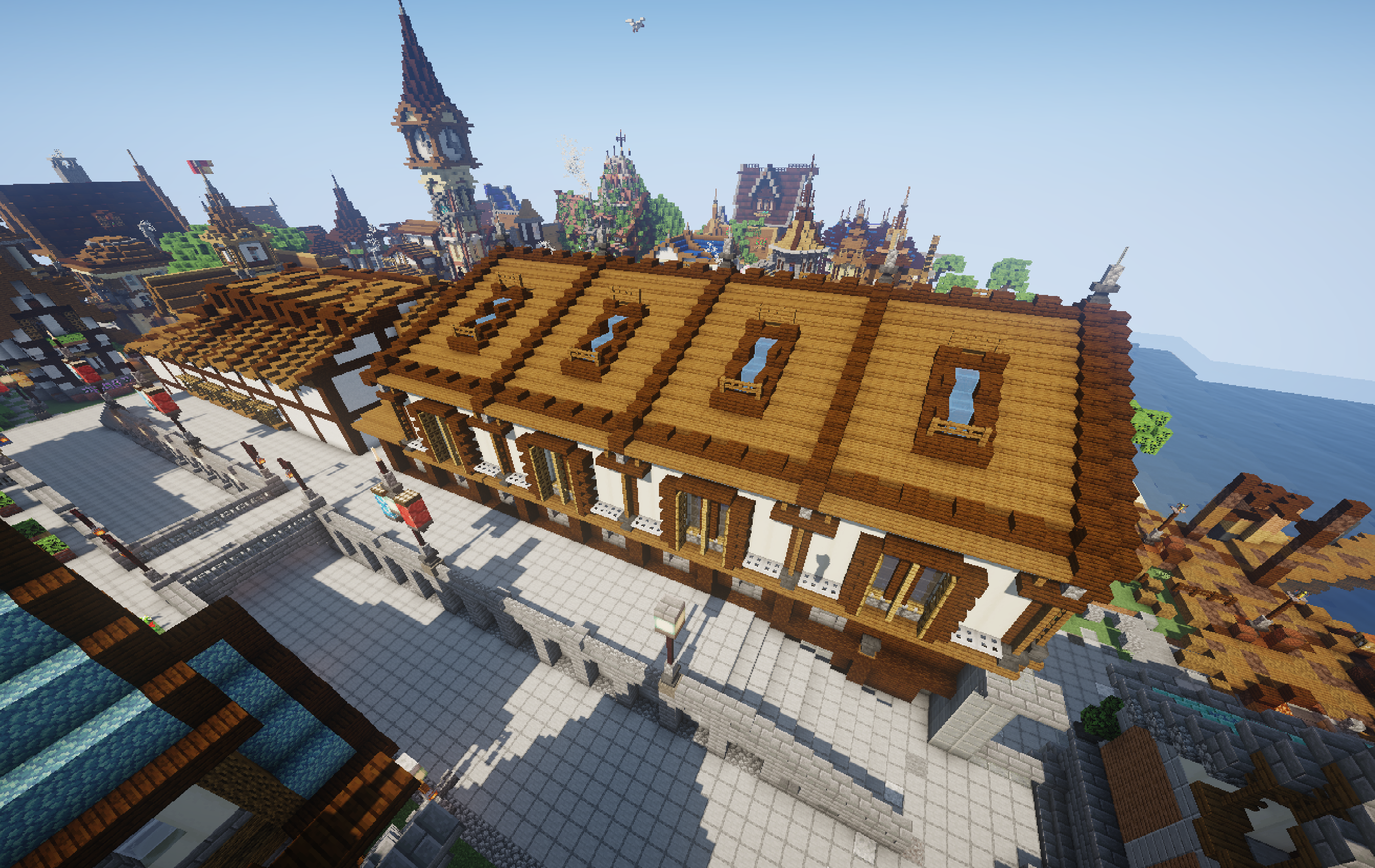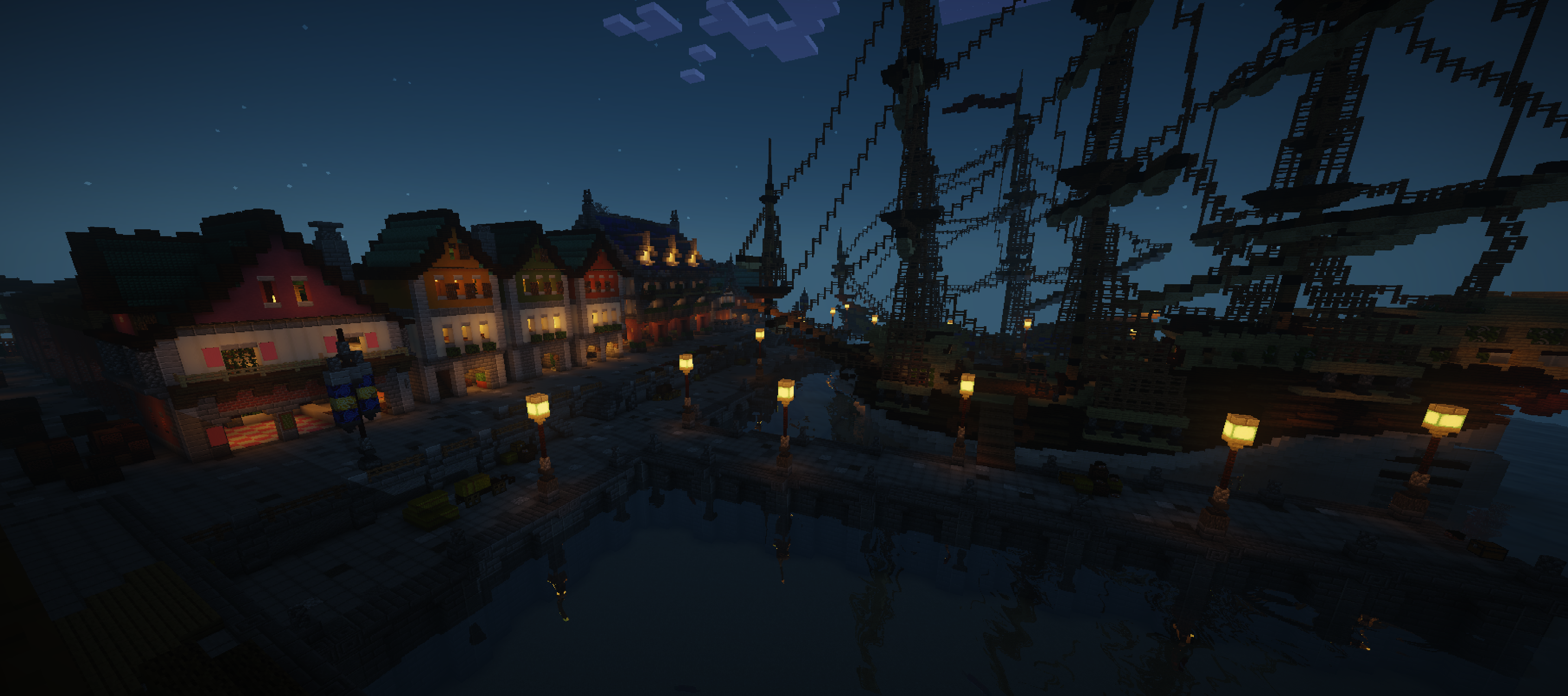 Приятная новость! Можно сказать, что мы на 95% закончили строительство города Гросенхайн. Осталось навести марафет(интерьер, освещение, декор и тд). Работа идёт полным ходом! Несколько скринов с улучшенным дизайном: 1. Добавили немного освещения нашей библиотеке. 2. Осветили слегонца порт. 3. Добавили света на один из берегов Гросенхайна.