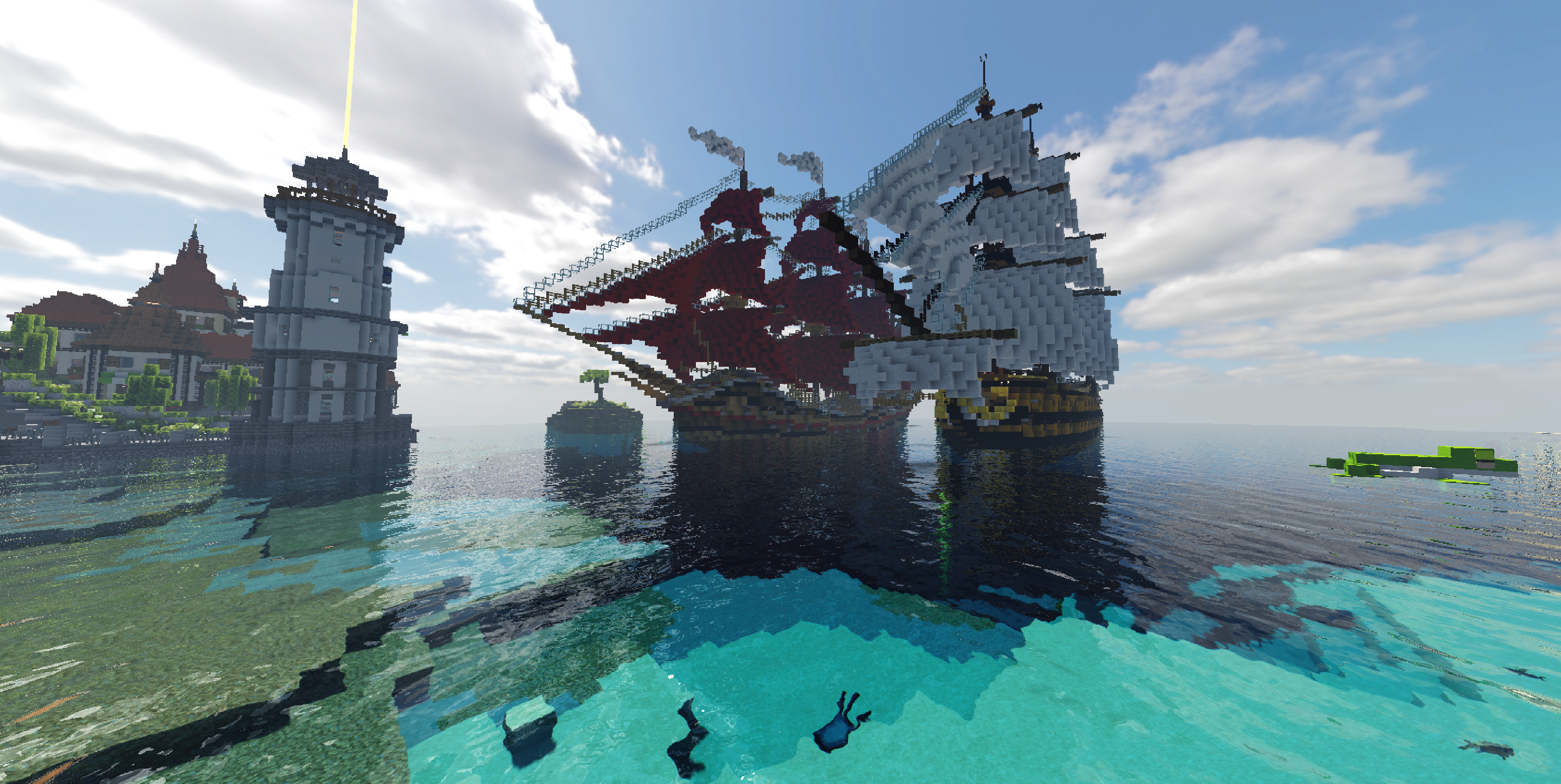 Что же дальше... А дальше мы думу думали, что нам делать дальше, но отвлеклись и сделали такой симпотичный прудик/озерцо. Активное участие в его преобразование принимал angvar. Как известно, где вода, там море/океан. Нашу эскадру пополнили вот такие два красавца.