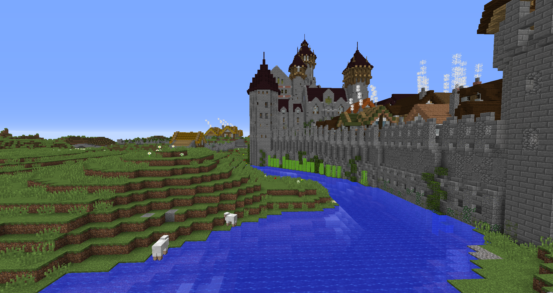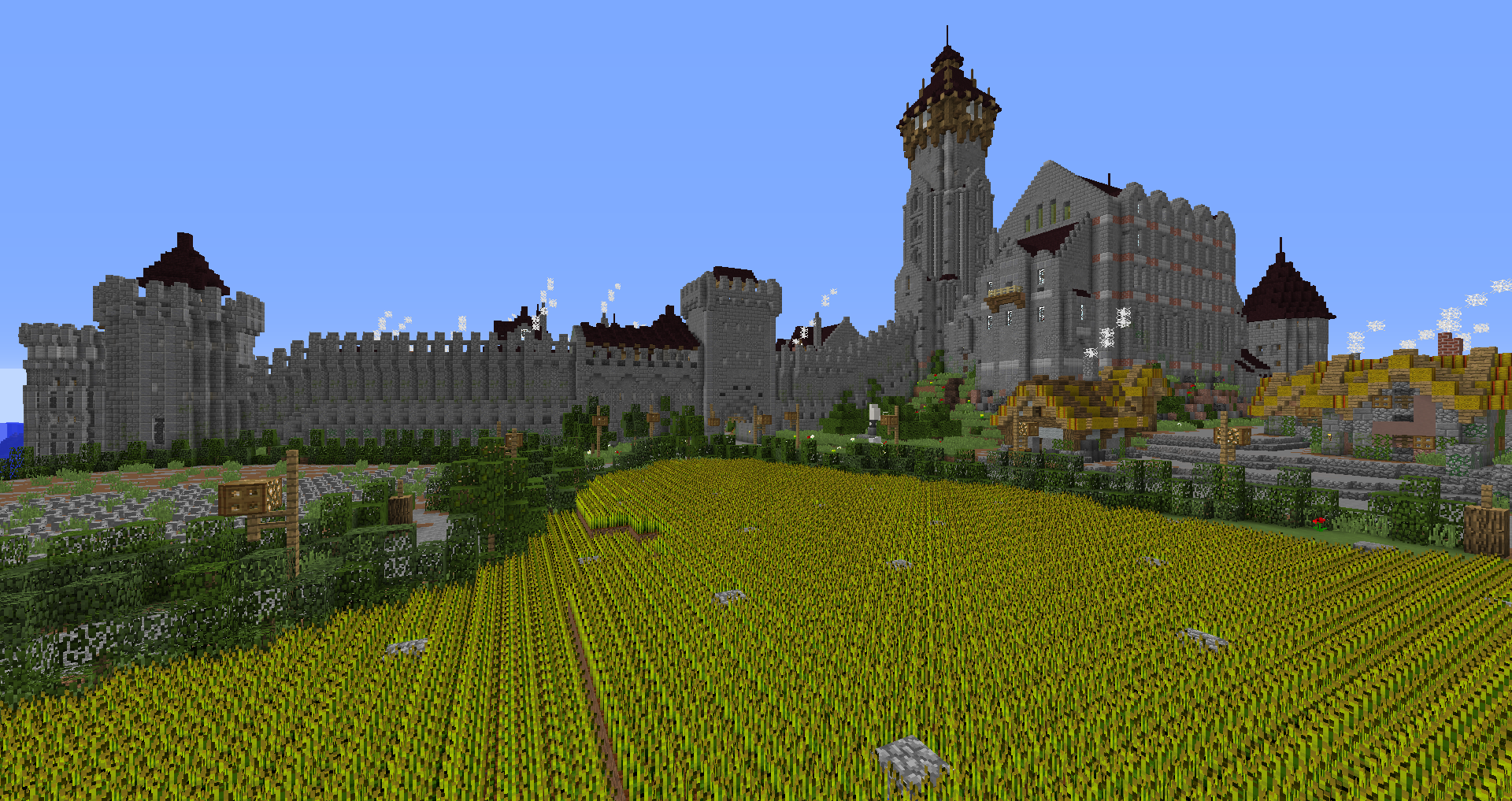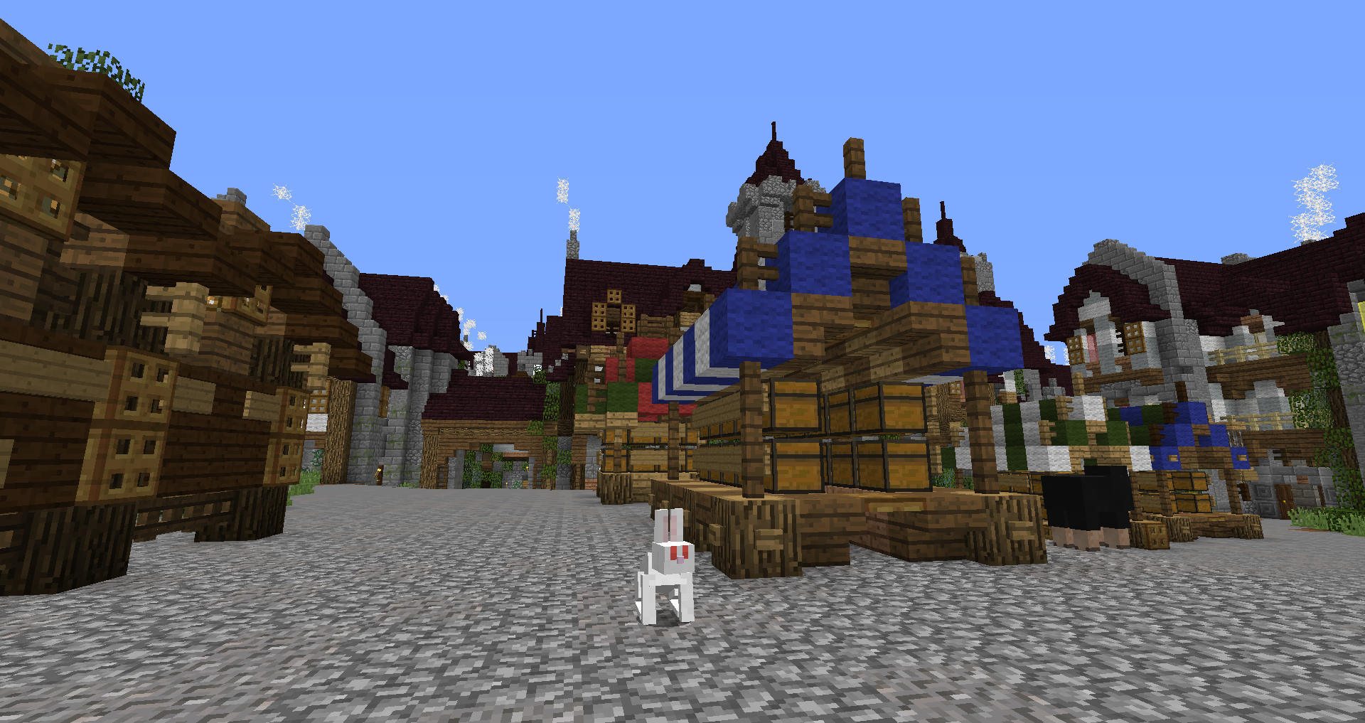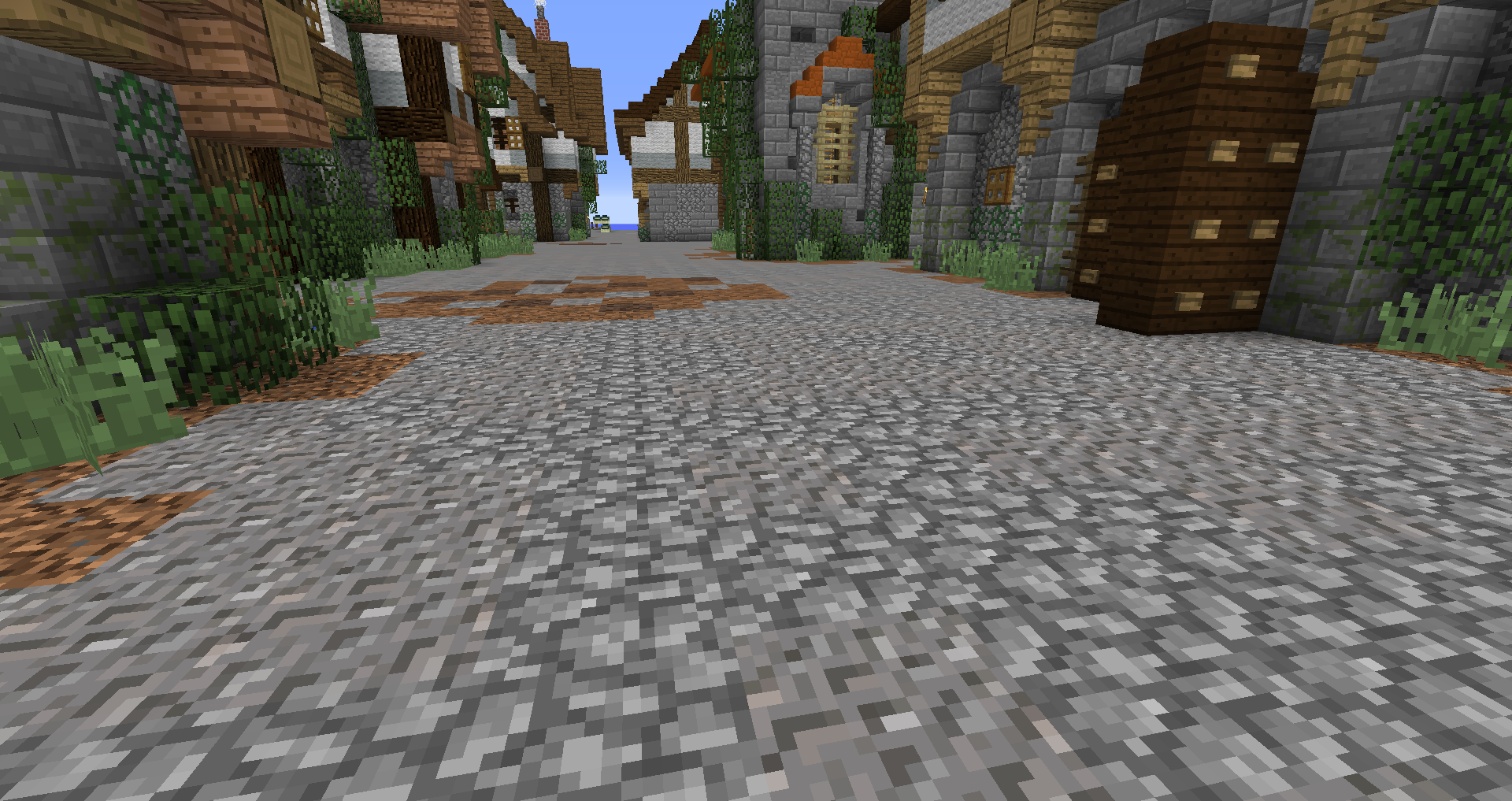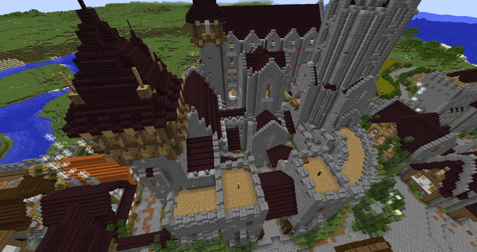 Город спавна который будет на новой карте. Вид с карты. Непосредственно точка спавна (обозначена табличкой), так же видны торговые палатки. Тоже самое, но видны ворота в цитадель (замок) и пустующая доска объявлений Игроков нет, по этому на спавне тусуются зайцы и овцы Будущие порталы, пока только рамки. Улочки московские... Порт. Сгоревший дом. Вид извне. Не знаю что автор (угадайте кто ) хотел этим показать, но да, это горка черепов А это видимо кладбище. С высоты птичьего полета на виверне. *Ландшафт не окончательный! К окончательной версии изменится как линия берега с руслами речек, так и линия горизонта. Данная серия скриншотов сделана на условном ландшафте который в теории может быть, только и исключительно для самих скриншотов, чтобы они смотрелись гармонично. upd: совсем забыл сказать. Все дома рассчитаны так, что они не перекрывают друг друга и в последствии будут распродаваться всем желающим.