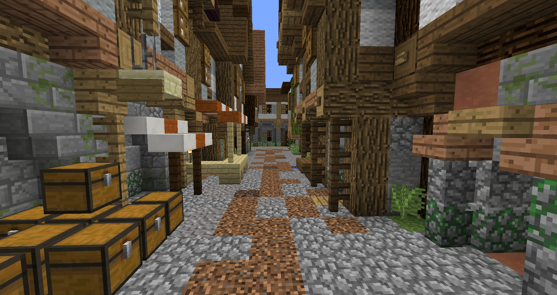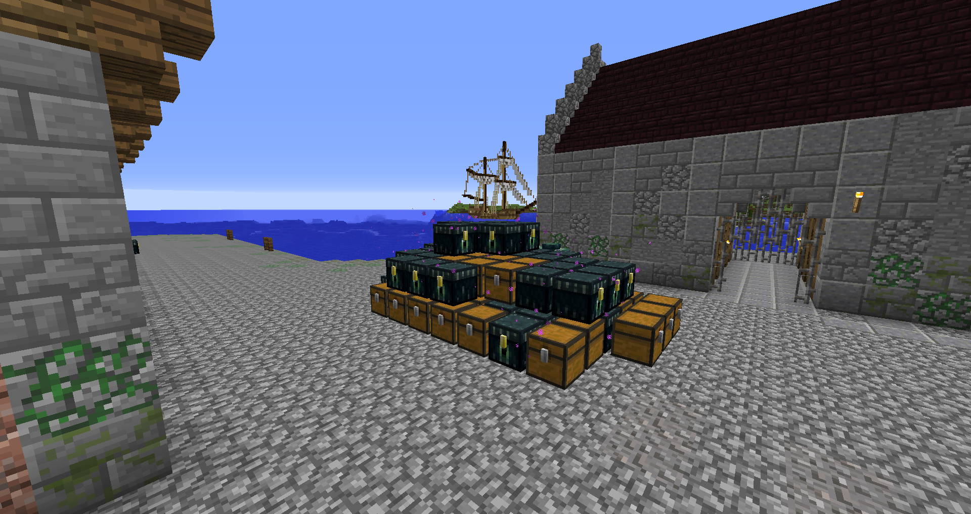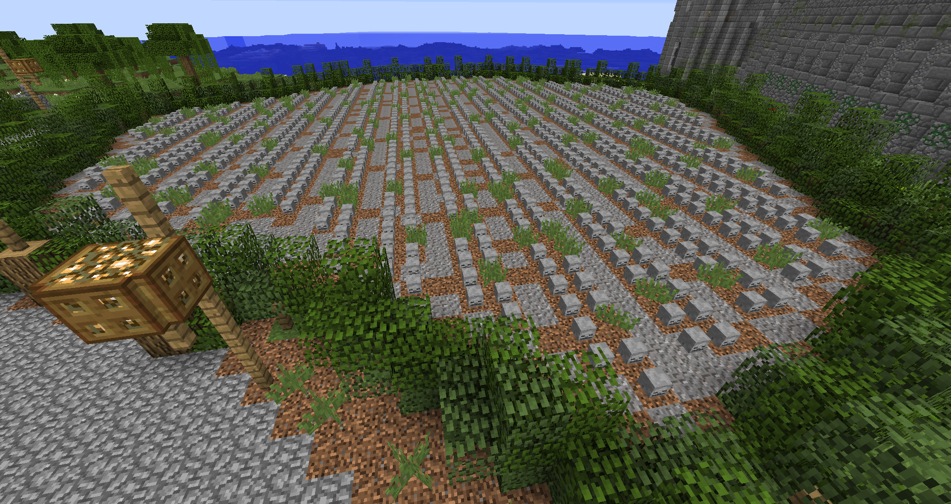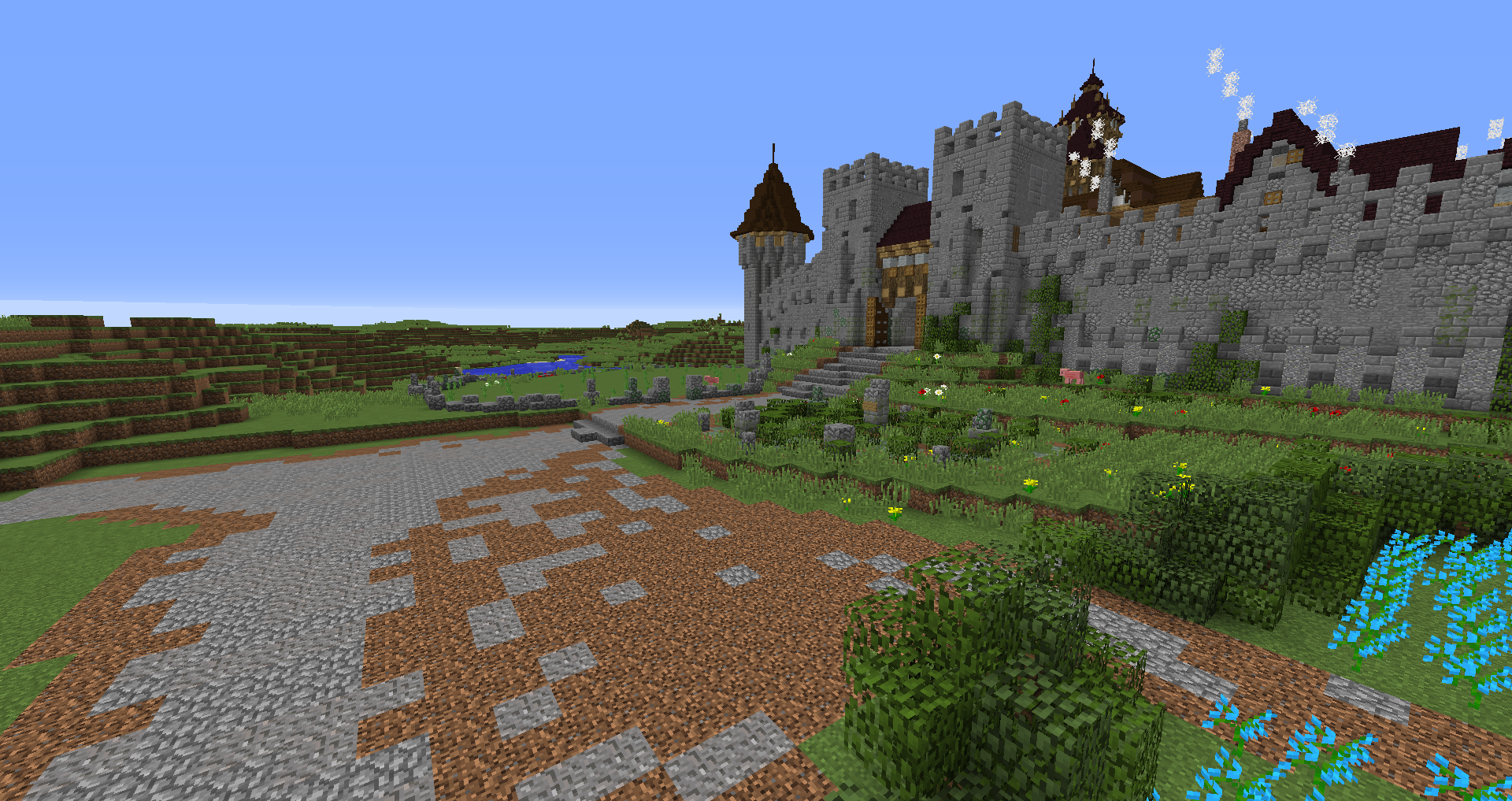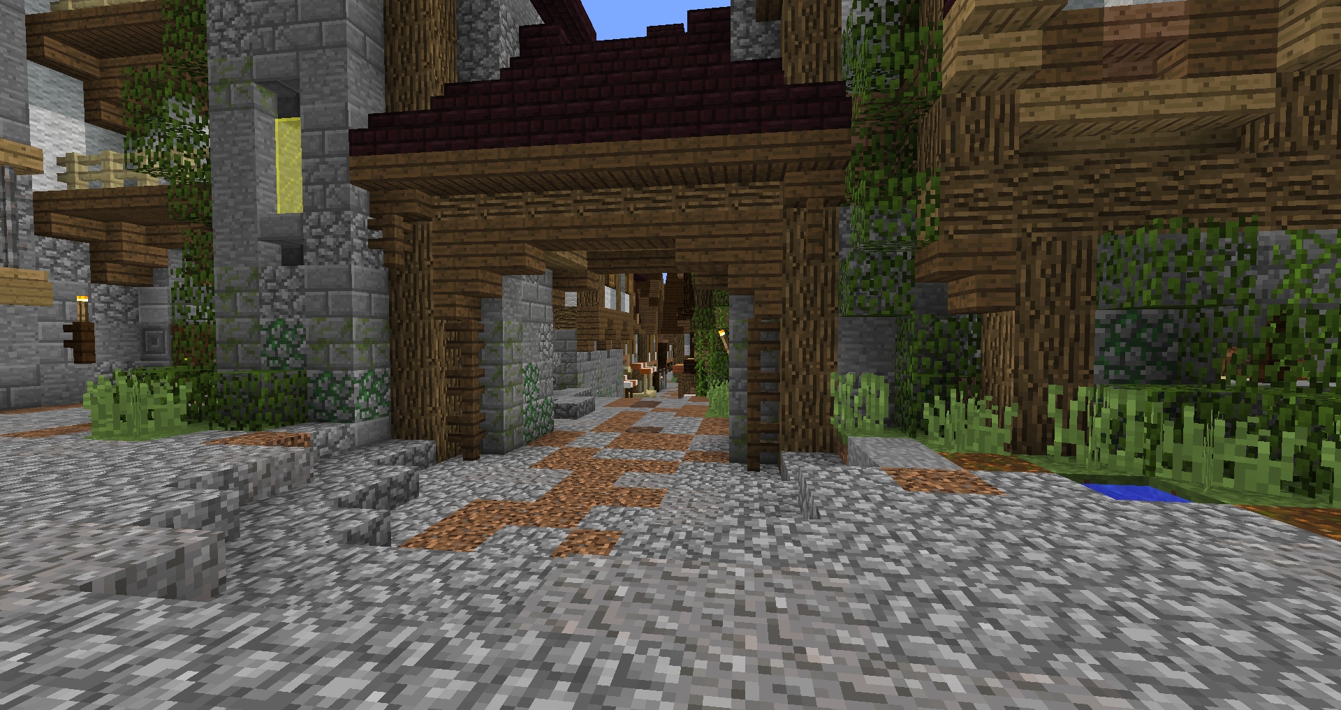 Город спавна который будет на новой карте. Вид с карты. Непосредственно точка спавна (обозначена табличкой), так же видны торговые палатки. Тоже самое, но видны ворота в цитадель (замок) и пустующая доска объявлений Игроков нет, по этому на спавне тусуются зайцы и овцы Будущие порталы, пока только рамки. Улочки московские... Порт. Сгоревший дом. Вид извне. Не знаю что автор (угадайте кто ) хотел этим показать, но да, это горка черепов А это видимо кладбище. С высоты птичьего полета на виверне. *Ландшафт не окончательный! К окончательной версии изменится как линия берега с руслами речек, так и линия горизонта. Данная серия скриншотов сделана на условном ландшафте который в теории может быть, только и исключительно для самих скриншотов, чтобы они смотрелись гармонично. upd: совсем забыл сказать. Все дома рассчитаны так, что они не перекрывают друг друга и в последствии будут распродаваться всем желающим.