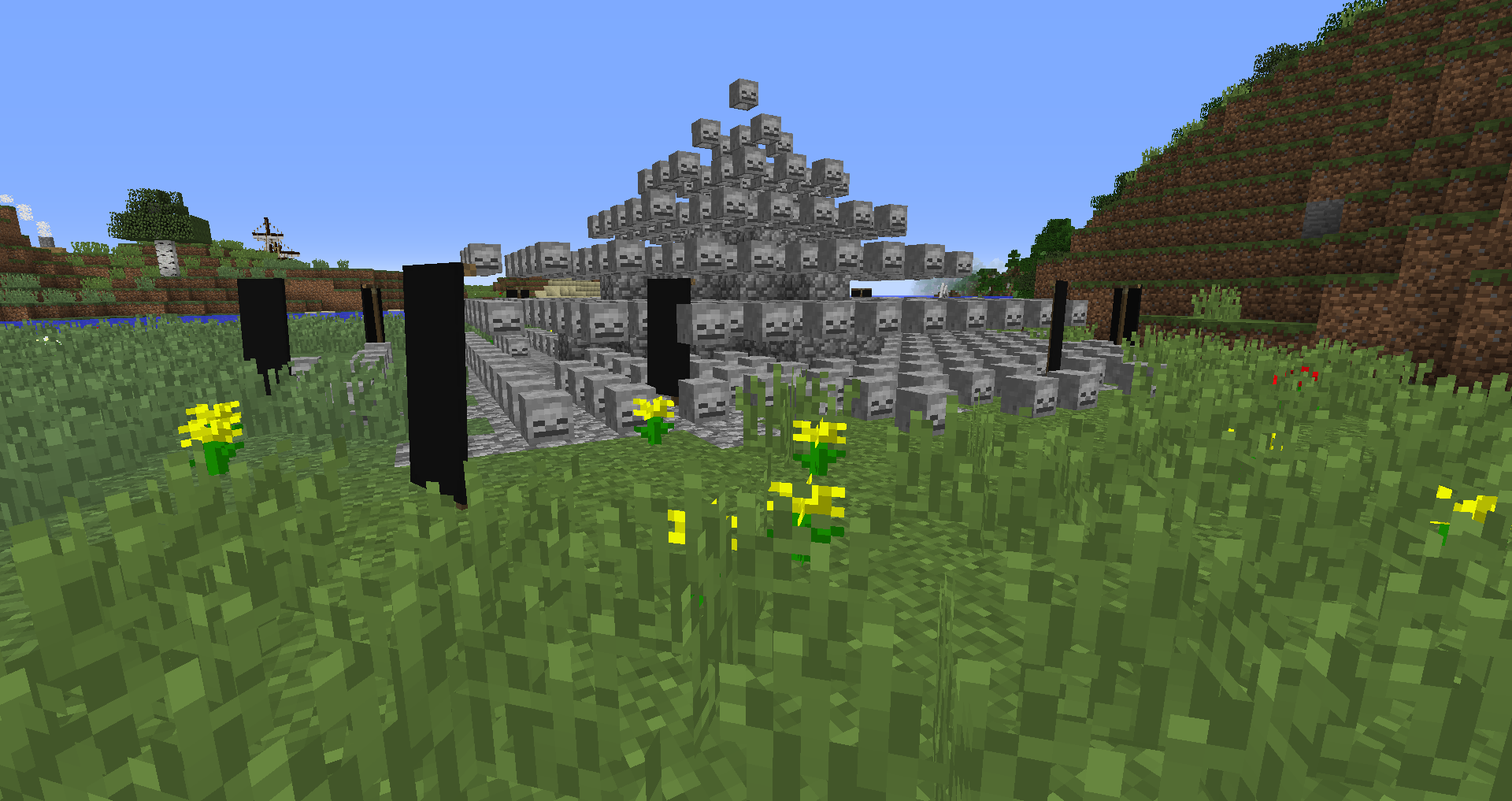 эмм, то не кладбище, ты видать город перенес на новую карту и по какойт опричине ID голов крипера поменялись на головы скелетов, кароче то капустное поле (если б ты почаще заглядывал в процессе стройки то знал бы)- головы крипера зеленые как капустные кочаны (даже есть текстур паки где они и есть капусты), теперь их надо переделывать в ручную (WE их не делает как надо), и в некоторых внутриних двориках домов тоже есть капуста - наверно там теперь тоже черепа и надо будет переделывать. кстати горка черепов это - может знаете картину не помню кого - "апофеоз войны" ты ее по дальше от городе гденить в степи воткни, кто то гуляя найдет и офигеет, особенно если ночью, тока заприватить не забудь а то быстро растащют