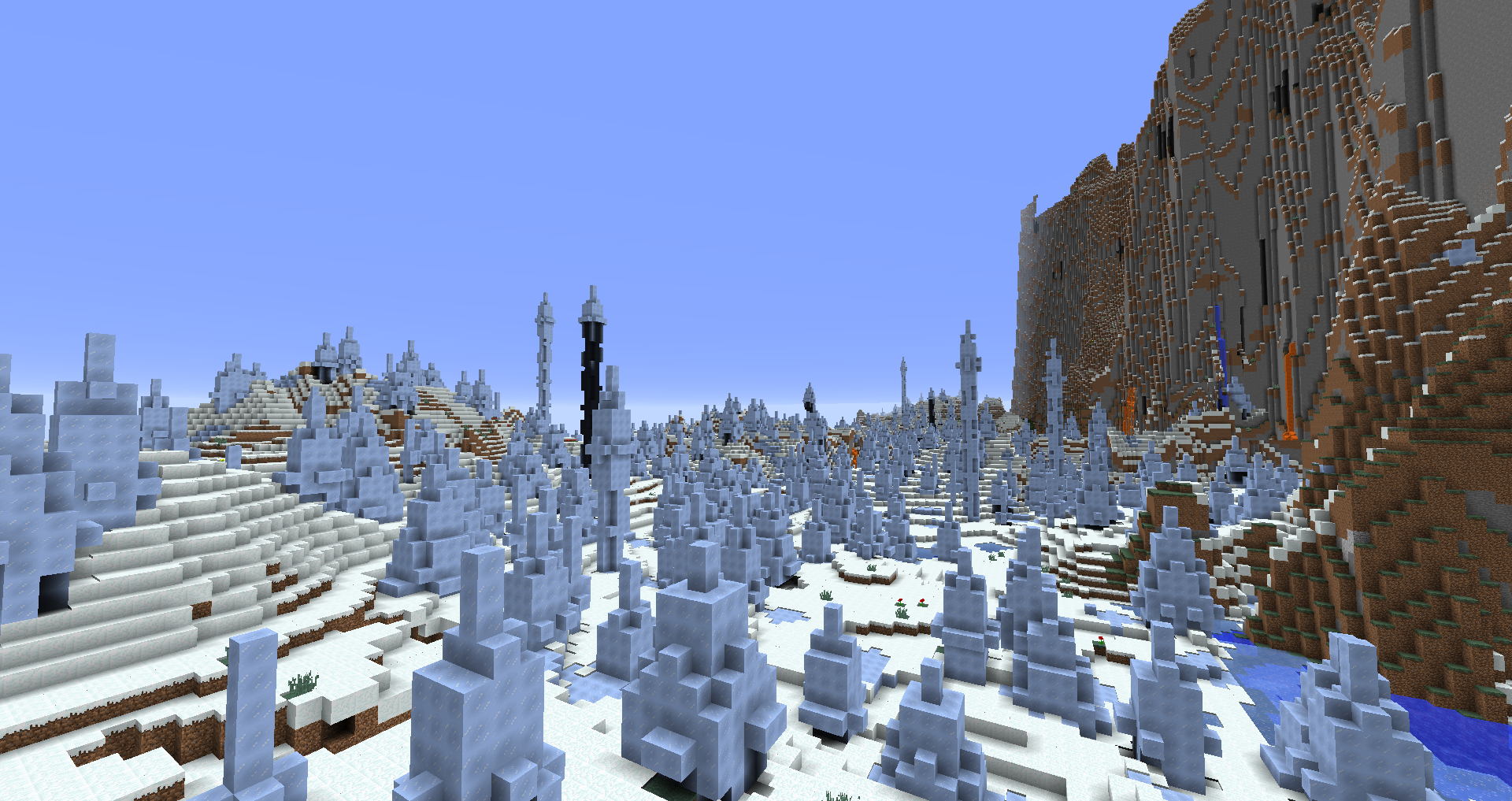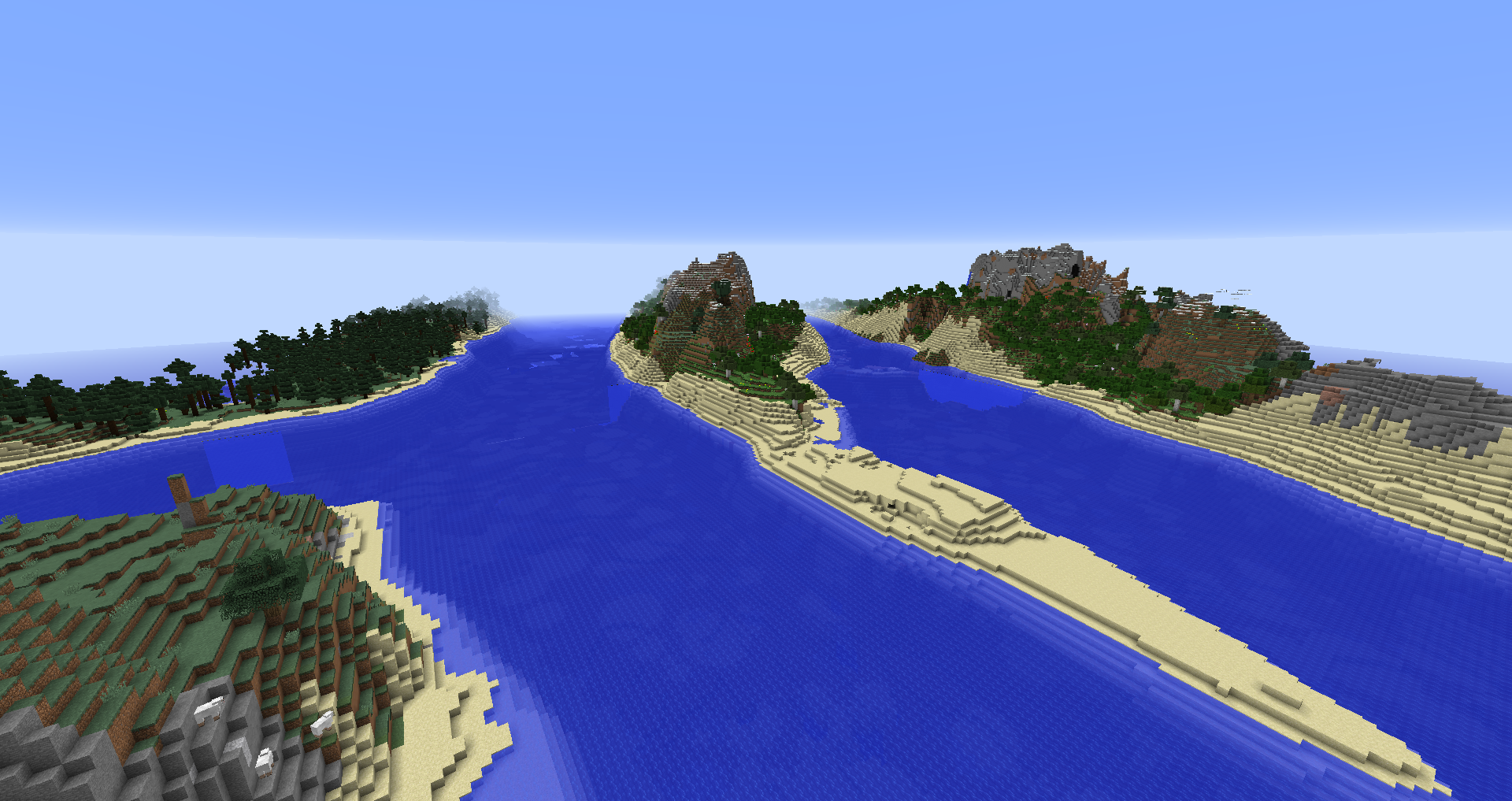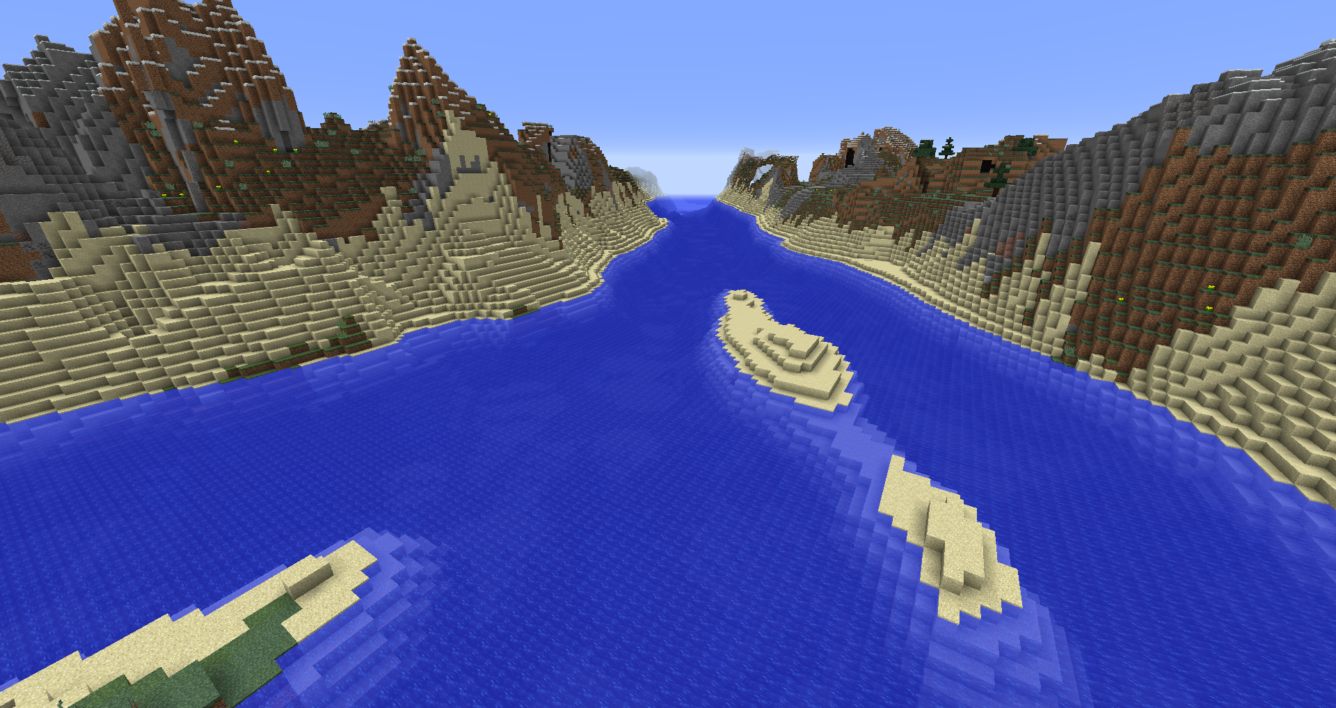 Острова планируются. "река" возле пустыни - это один из биомов который в этой генерации не сделался из за упомянутой выше ошибки цветов. Вместо него там тоже пустыня, но гористая, завтра увидите. В снежных биомах, там пятна цвета Ice spikes, на сгенерированной карте получились какие-то озера. Это биомы сосулек.