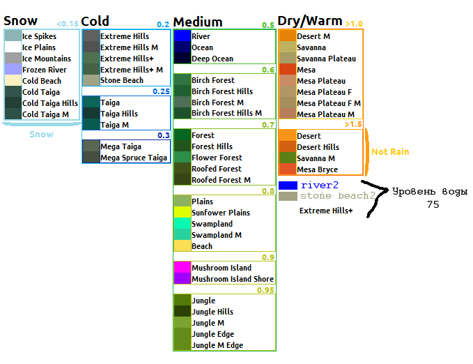 Не торопитесь использовать биомы *M на карте цветов. Там не очень верные цвета. Через минут 15 выложу исправленную версию карты цветов.