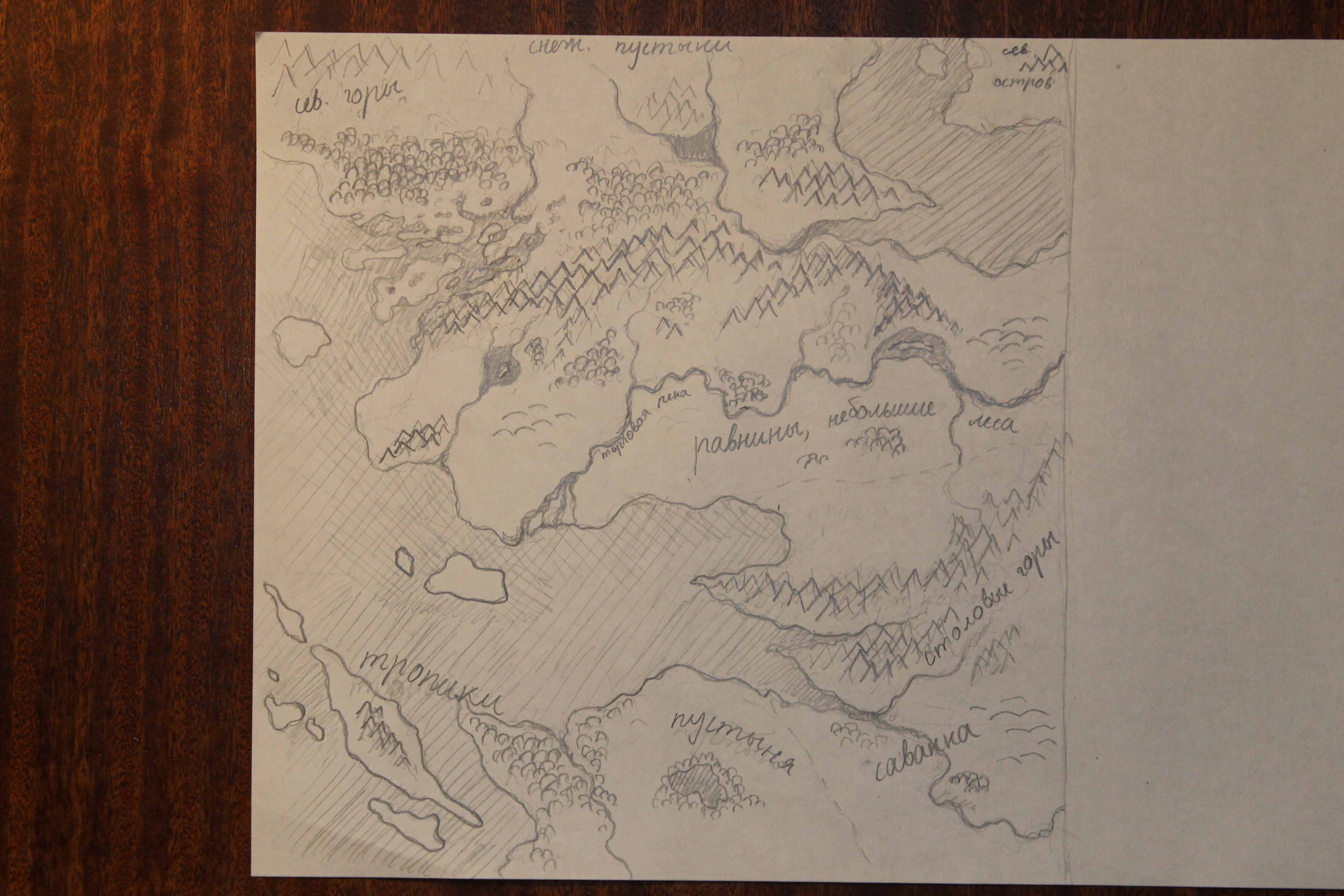Сурисо видимо пока меня не слишком понял). Я собирался пока что нарисовать общий план; как идею. Отталкивался, как уже вышло, от его карты. В общем, вот как-то так: Названия можно будет в редакторе подписать, они тут достаточно условные и не все. Сделано тут все, можно сказать, на скорую руку (буду рад, если кто-нибудь тут что-нибудь поймет %) ). Ну, например, там вон размазня слева сверху над горами - это типа топи, а пятно на пустыне - оазис). Я хотел подобно этому рисовать от руки, а потом это будет куда удобнее обводить в любой программе (хоть как-то знаком я только с фотошопом, в кореле не работал). Теперь что касается технической части. Все это дело ведь только карта биомов. Изменения в генераторе позволят сделать горы, а не "горы" которые получаются в стандартном мире (ну, это самая, по-моему, больная часть стандартного генератора, а я вообще их фанат)? Т. е. достаточно высокие, более-менее правильные, со снежными вершинами? Да и вообще остальные места. Может тут как-то можно подстроить Realistic World Generation или другие моды, изменяющие генерацию? Также особо интересные места можно было бы, например, Voxel Sniper'ом обрабатывать (если кто-нибудь захочет с ним работать и устанавливать).