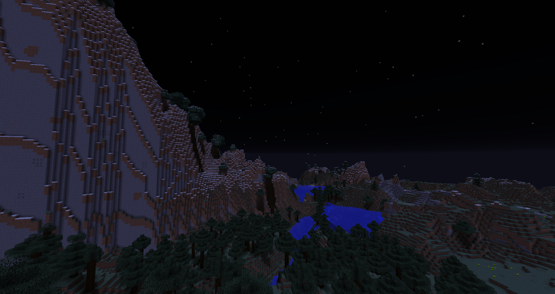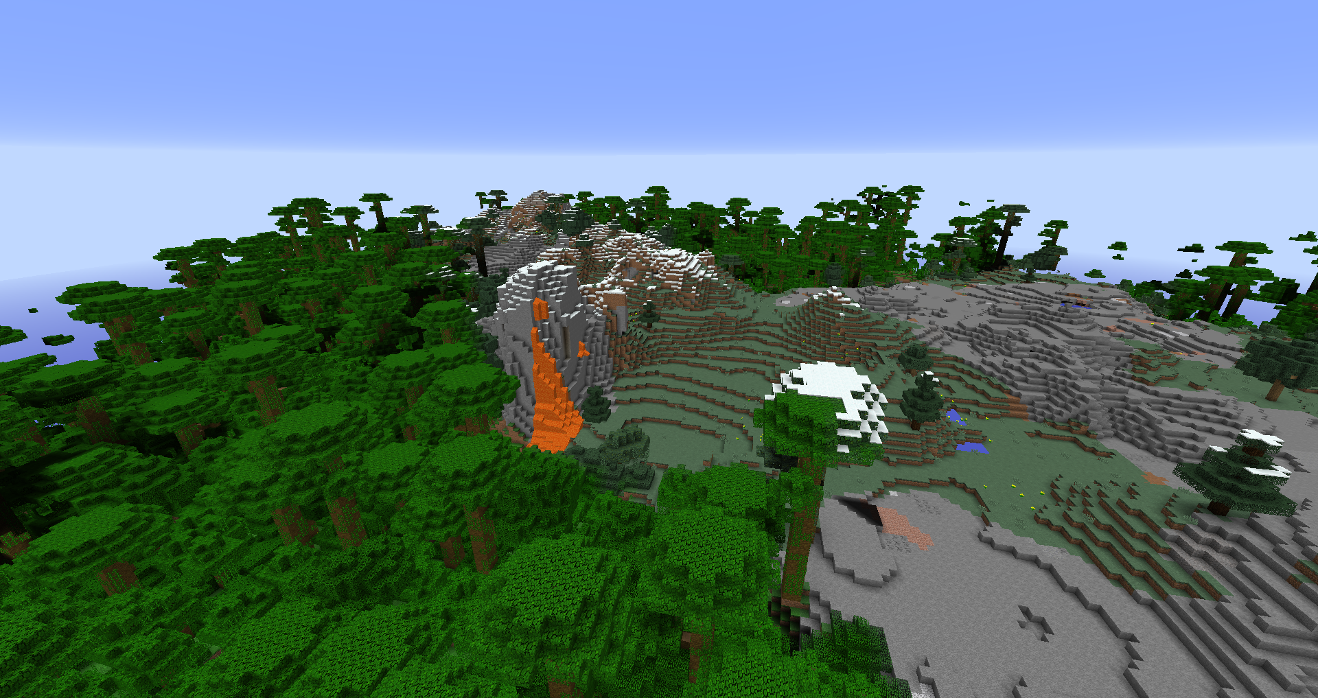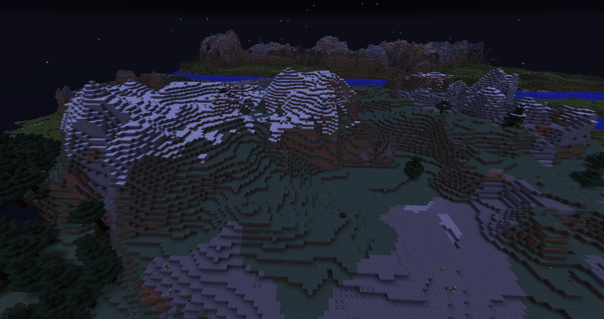 Горки маловаты, конечно (там где я рассчитывал на высоту), но радует, что они очертаниями уже похожи на настоящие. Хотя я стороной обошел биом ExtremeHillsM, там, должно быть, повыше будут.