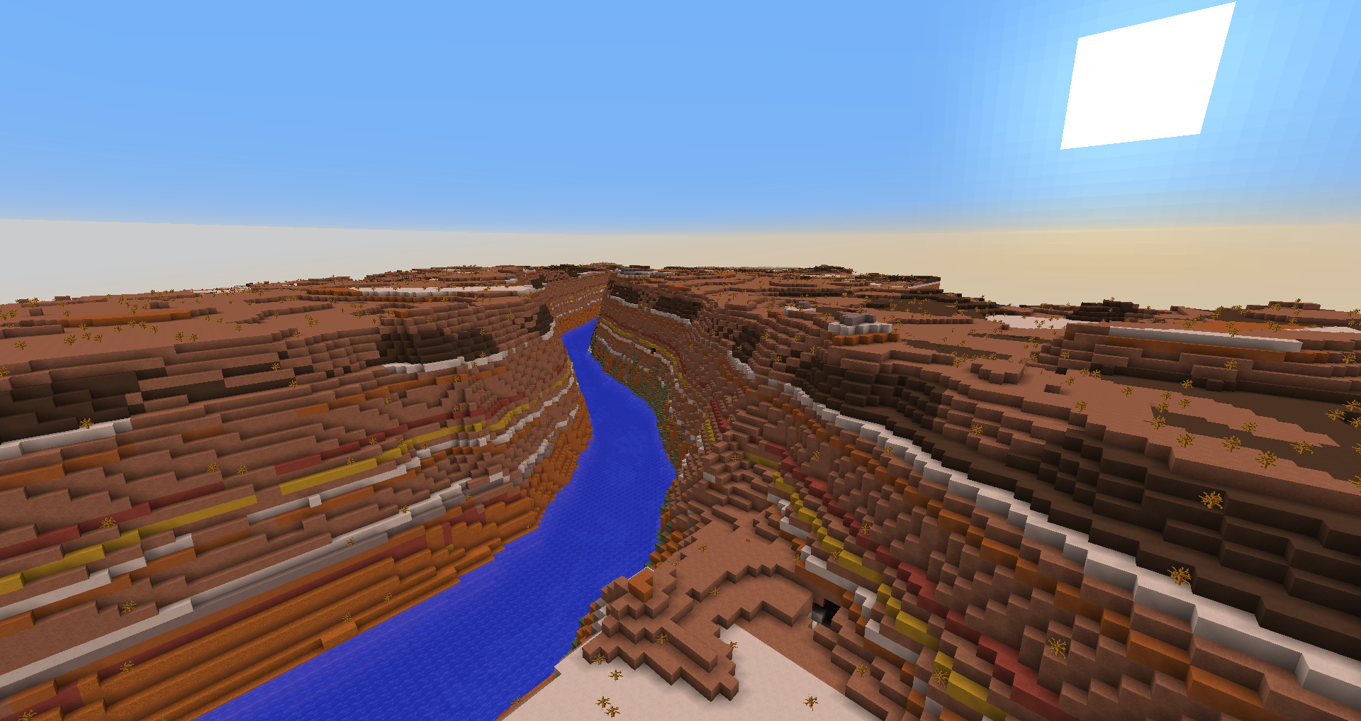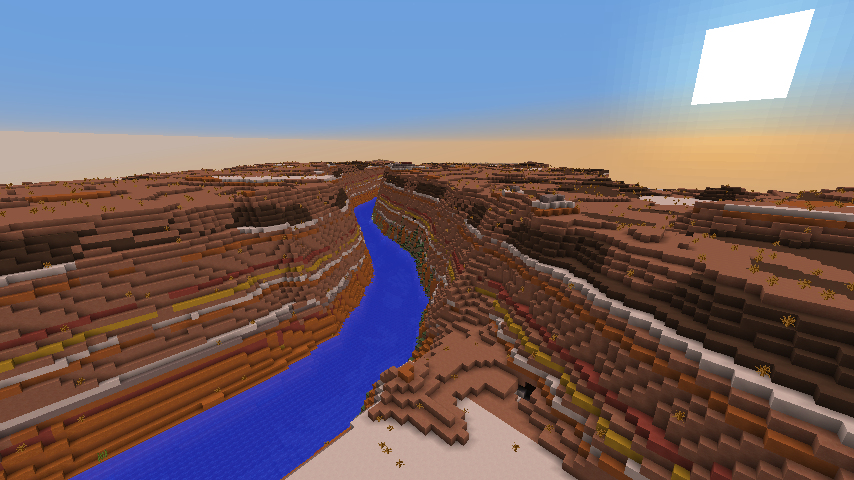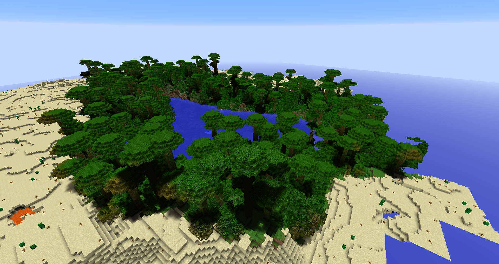 Мне каньон очень понравился, а вот джунгли среди пустыни нереалистично смотрится - слишком резкий переход надо за счет биомы (эм... наверно саванны) сгладить) Карта прикольная получилась, особенно центральная река)