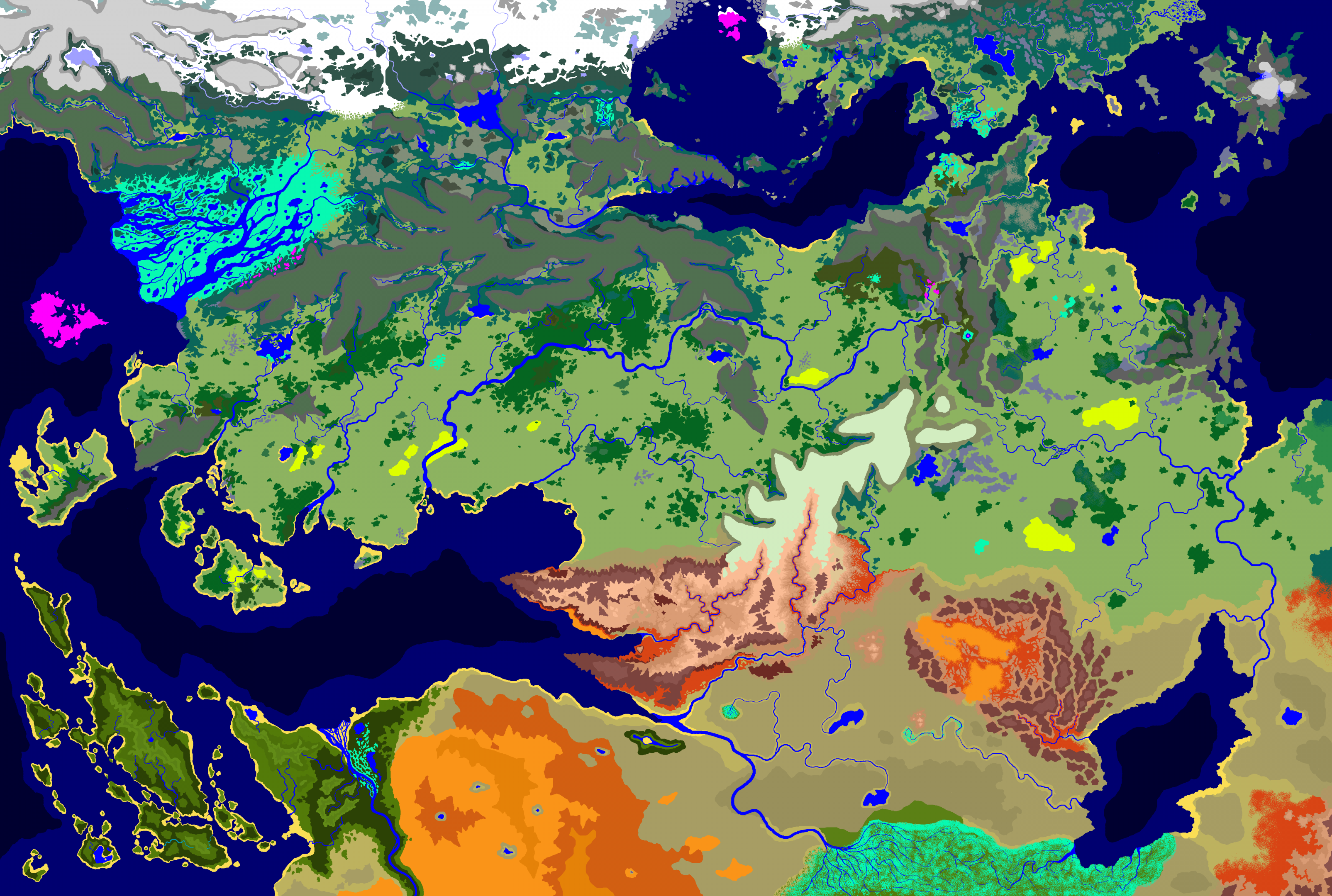Ох, и веселая же планетка у нас получается, если верить размеру карты))), со всеми вытекающими... Добро пожаловать в мир джунглей, саванн, пустынь и сезонов дождей))) Шучу). Планета - уникальный перл во вселенной, одному Творцу известно, какие силы удерживают планетарную ось этого "веретена" перпендикулярно к плоскости эклиптики. Спойлер: карта