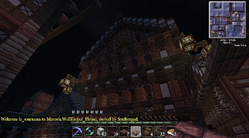 Да, Змей, не нарушай форумные правила. Вот и следующий аукцион. Сразу скажу, дом сегодня необычный, с противоречивой историей, наполненной потом и кровью : ) Seliat, предложивший свои архитектурные таланты на службу нашему городу, построил его как небольшой экзамен. И сделал это, надо сказать, совершенно здорово. Но вот незадача - я, как покрывшийся плесенью меровийский архитектор-монополист, конечно же не мог согласиться с вызовом молодого, дерзкого таланта и решил внести несколько правок. Тут понеслось... Дом оказался построенным практически два раза подряд, сперва Seliat'ом, потом мной. Мы, то ли соревнуясь, то ли работая вместе, породили нечто. Версия 1. Первоначально дом был просто супер, но я испортил его гнусной поместью гриферства и примитивизма, особенно "постаравшись" над внутренностями. То что дом еще не вызывает рвоту - заслуга гениального дизайна в основе. Версия 2. Seliat сделал адское нагромождение из заборов из люков, видя который люди испытывали немотивированное беспокойство. Но я спас несчастных от депрессии, нанеся несколько точечных архитектурных ударов и теперь дом даже похож на дом. Версия 3. Мы органично дополнили друг друга и, хотя остались несогласны с решениями друг-друга, вышло хорошо : ) Решать вам : ) Собственно дом. 4 этажа, маленький подвал (можно изрядно расширить и углубить до упора сабзоны). Этажи увеличиваются по площади наверх. Проведен свет, внутри злополучная нейтральная деревянная отделка, которую можно или оставить или поменять на более "блатные" обои, по желанию хозяина. Стартовая цена 170.000 + 4 стека золотых слитков. Регистрация на аукцион до вечера субботы. P.S. Старая фигня про то что учитывайте текстур пак и посещайте дом лично перед решениями - как никогда актуальна. P.P.S. Дом готов, но на нулевом этаже слегка не добита отделка из-за сундуков что там стоят + так как фасады сложные, где-то могла потеряться деталь-две. Это все устранится за время регистрации. Покупатель получит уже все в идеальном виде. Спасибо.