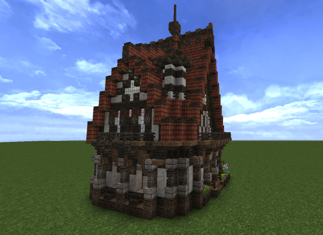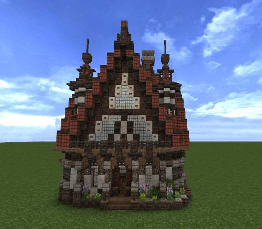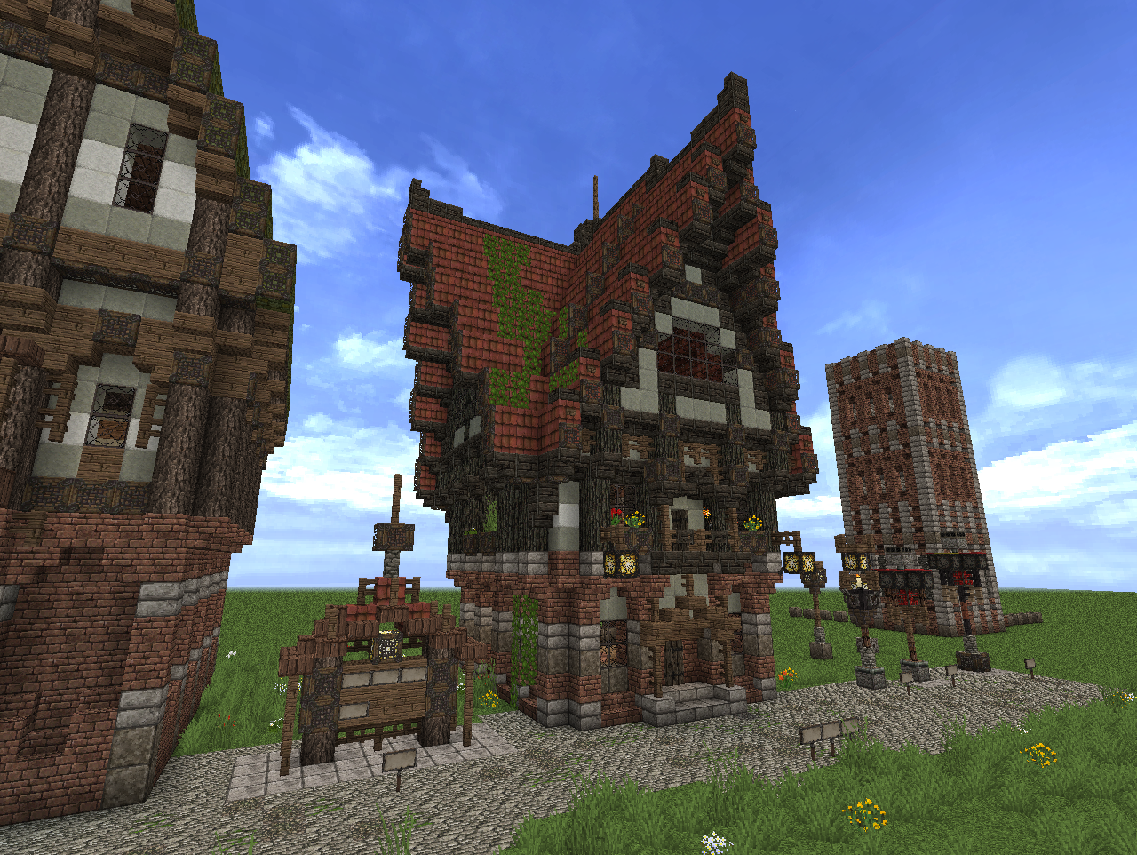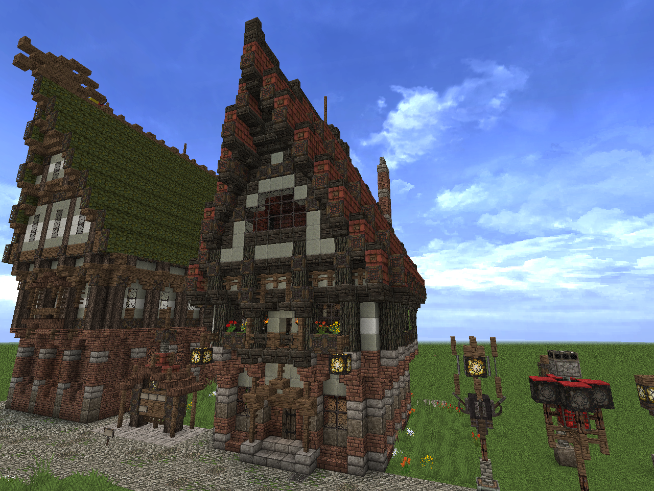 Основные ошибки, на мой взгляд. 1. Крыша. Бедная и какая-то пустая. Что на торцах, что на коньке. 2. Труба. Ну куда тебе такую фабричную? По-моему, в Меровии единственная сквозная труба - над горном кузни в Цитадели. Плюс неудачное место, грамотная высота - да, смотрится - нет совсем. Плюс ещё люки эти... 3. Балкон и стеклянная стена ВООБЩЕ не смотрятся. Не та архитектура всё-таки. 4. Дерево на балконе - за гранью добра и зла. 5. Ящики с землёй по периметру дома избыточны. Слева-справа от входа, сзади может... и хватит. 6. Фронтоны. Снова белое стекло, снова треугольный вырез. У нас средневековье... походи, посмотри на другие дома. Не было там такого. 7. Бесполезно пытаться просто копировать нашу архитектуру, даже не пытаясь её осознать. Пробовали многие. Результат... тот ещё. Мыш сам сказал, что единственный, кому удалось сделать здание, от которого не хочется плеваться, это я. Вот ниже работа. Как видно, архитектура тут - вообще помесь древнемеровийской, неомеровийской и ещё Соул знает какой. Но вполне гармонично смотрится, по крайней мере Мышу понравилось. Я бы конечно многое переделал бы, но если уж взялся бы строить, то квартал, и с нуля. А такой задачи пока нет. В общем, походи по городу... посмотри, что да как, и действуй. Вершина домовой архитектуры - дом 100g у гавани с зелёной крышей, отдельно стоящий. Тебе надо нечто вроде него, но НЕ копию!