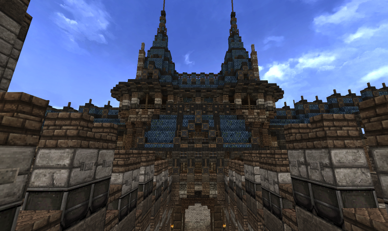Пока без стен, просто как-нибудь начерно по сторонам башен, без отделки, где стены будут. Мне еще надо сверить пару вещей.