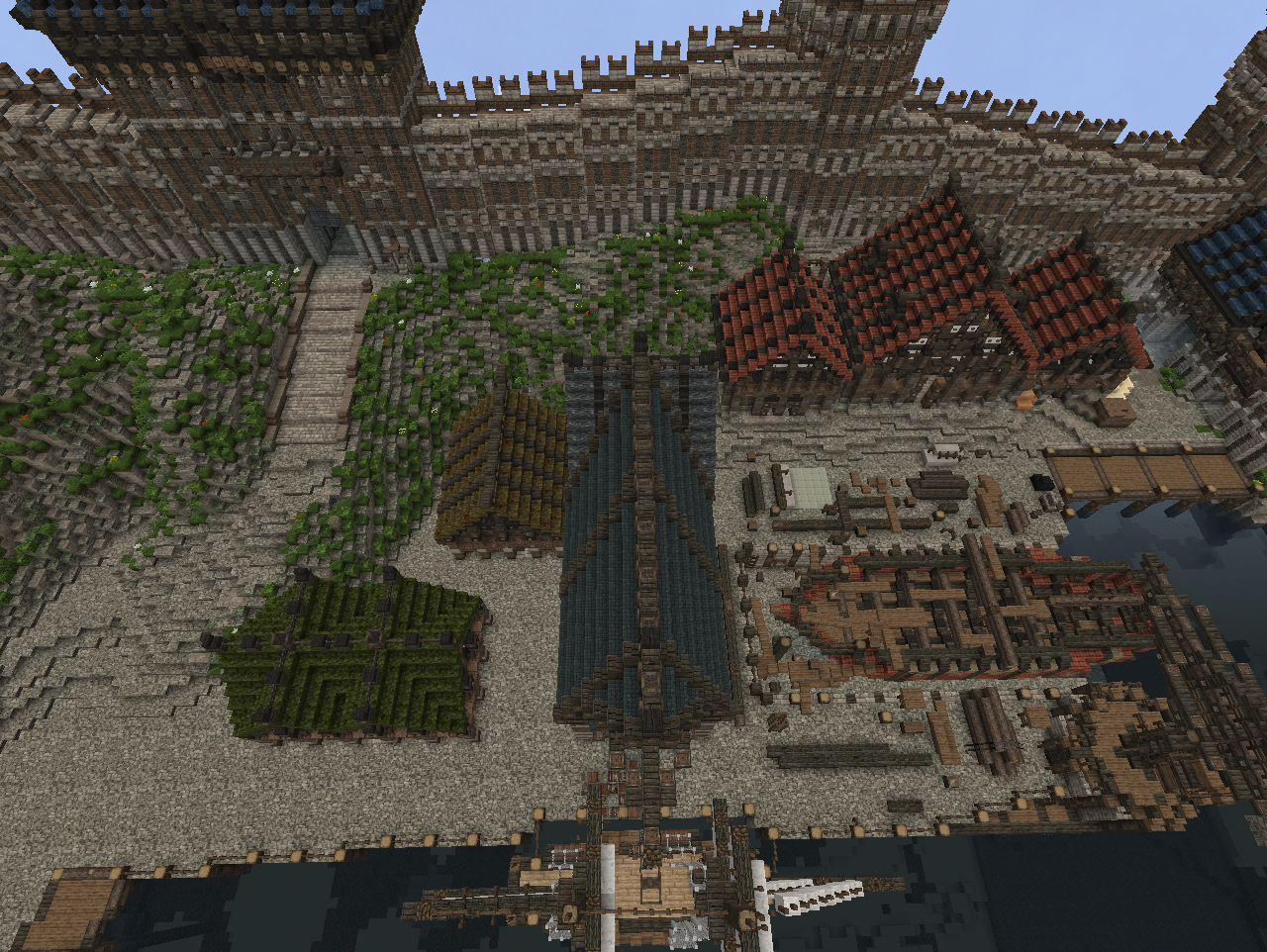 Ну как сказано, так и сделано. Вчера закрыл последнюю дыру рельефа в порту. Сегодня же в креативе достроил наконец портовые ворота, и два участка стены. В ближайшее время это дело будет построено.