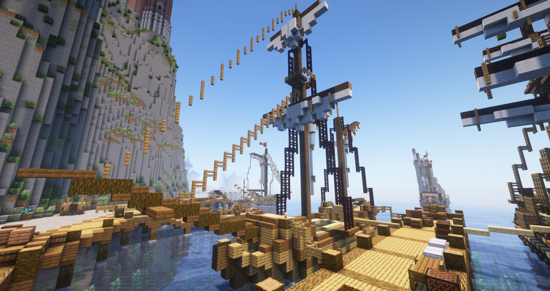 Продолжение рублики "пять..." Пять значимых кораблей Меровии. 1. Гукор Easthaven Jager Автором этого корабля является Vremizov и это первый корабль Меровии и одна из старейших построек сервера, появившаяся как минимум в 2014 году. Он стоит на прежнем месте, как в старой снежной Меровии, только причалы расположены иначе, но сам корабль с тех времён почти не изменился. Единственное, что не оригинальное - обстановка в каюте капитана, раньше таковой вообще не было. Название переводится как "Егерь Истхейвена", Истхейвеном звалась Меровия до того как она стала Меровией. 2. Галера Eagle Корабль появился благодаря конкурсу для пополнения флота Меровии (занял первое место) и создан Black_falcon. Тоже очень старая постройка, была в 2014 году в тесной полузамёрзшей гавани, но с тех пор трижды меняла своё местоположение. Исходно галера была в гавани у старого входа в порт. Причём из-за крошечных размеров той первой гавани, смотрелась нелепо. После сноса всей старой стены и создания новой, вкупе с некоторым расширением гавани, корабль уныло торчал посреди гавани с поднятым парусом. Именно по этой причине галера была перенесена на внешний рейд. Затем в связи со сдвигом маяка, она была повторно сдвинута на юг на уровне маяка. Ну и напоследок из-за не совсем уместного расположения галера была развёрнута и поставлена в пролив между главным островом и материком. 3. Фрегат Sea Falcon И снова корабль с того же конкурса, занял второе место. Автор его VIOX и это было его жильё (или не успел пожить, точно не знаю). Также не менялся, также стоит на прежнем месте, только у другого причала. 4. Ладья Sayrex Построил снова Black_falcon. Название не имеет перевода. Корабль пришёл с конкурса кораблей, но уже другого, в нём фигурировал тропический остров. Была ли эта ладья в победителях, не знаю, но и без того она имеет довольно интересную историю, связанную с легендой об Аванпосте на первых заморских территориях Меровии. Художественное переложение этих событий как-то писал в Герольдах, но в целом это действительно очень эмоциональное воспоминание о том, как на конкурсной карте внезапно обнаружил работы меровийского клана, да не просто кораблики, а целый небольшой порт на островке. 5. Бриг Merсury's Memory Этот корабль строил какой-то angvar и это его вторая серьёзная корабельная работа. Название связано с тем, что одним из основных прототипов был прославленный бриг Меркурий, известный своей победой в бою с двумя турецкими линейными фиг-знает-сколько-пушечными кораблями. Появилась эта работа при не совсем внятных обстоятельствах, корабль был размещён как попало в проливе между островом и материком. Постоянное место планировалось в небольшом порту у таможенного (Соколиного) замка, но этот порт долгое время не существовал и появился лишь недавно. Собственно, к его причалу корабль и переместился. Бонус 1. Корпус корабля Sinyagil Третий из трёх победителей вышеупомянутого конкурса кораблей для пополнения флота Меровии имеет тяжёлую судьбу. Галера и фрегат были успешно выстроены на сервере и годами украшают акваторию порта и ближайших вод. Фрегату Gallen не повезло. Сначала затянулось его возведение, дело дошло до уровня верхней палубы и встало. Потом все игровые карты с ним вообще оказались утеряны, и достройка стала бы возможна только если кто-то создал бы верхнюю часть корпуса и рангоут с такелажем с нуля, потому что сохранился