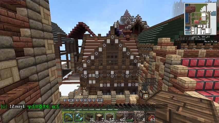 а) Я фанатично играю и строю в текстурпаке John Smith. Дома, хотя и могут выглядеть неплохо в дефолте или других текстурпаках, в общем и целом заточены под мой. Учитывайте это.