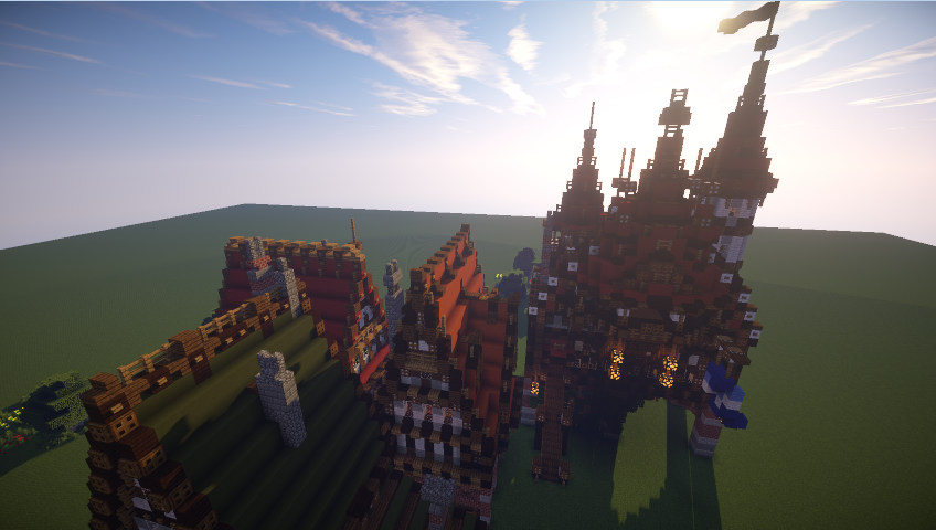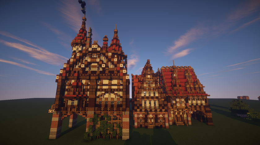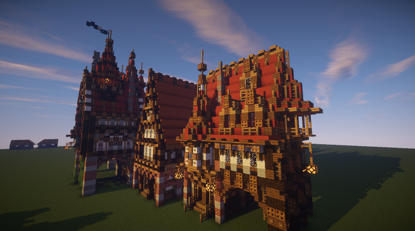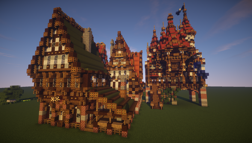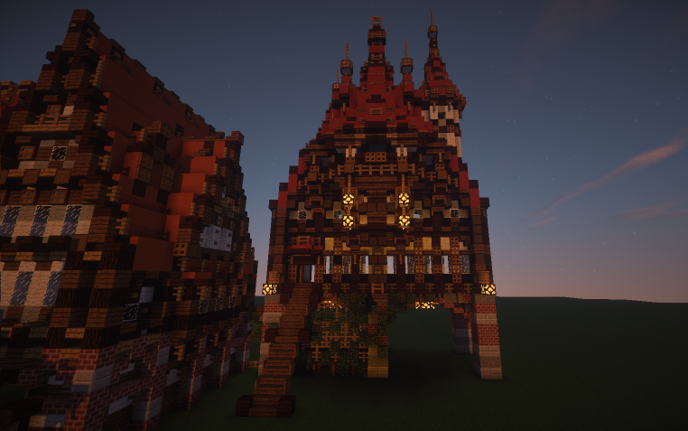 Арги, там ничего уж супер-невероятного, идея -- вынести еще одну башню от ратуши (где сейчас телега) и в ней попробовать сделать все же стационарный портал. Через канал перекину вроде галереи-мостика поверху. Сложно пока сказать как все ляжет в единую картинку. В целом у меня сейчас некоторый переломный момент, я хочу все же вытянуть нам более плотную, комплексную застройку. Потому как то что у нас на севере строят сейчас, в основном, композиционно предельно слабо. Я хочу свести дома в улицы и добиться примерно такого вида (только грязи поменьше), хотя зелени и нам добавить стоит. P.S. МГУ хорошо, образование.