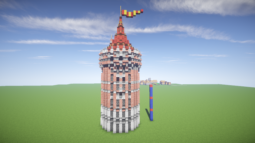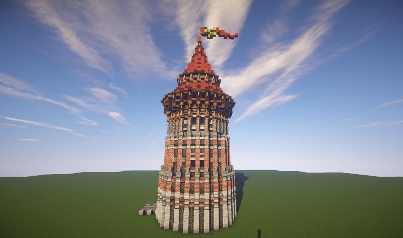 Не надо искать психа! Я уже тут. :hi: Эта башня - мой вариант. А то, что-то все постройки "маленькие и простые". PS: Дом с флагами закончим за пару дней.