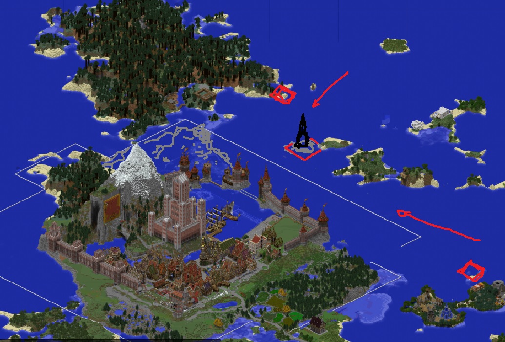 @SBKubric Отмель я бы все же себе оставил для терраморф экспериментов. Поэтому можно насыпать островок, чтобы маяк определял створ прохода между островками. Еще отметил 2 альтернативных места. Одно севернее, на полуострове, там свободно. Второе рядом с владениями Аргентио, но это уже на его вкус, хочет ли он чтобы так стояло. Но на этой карте я бы вообще по рельефу сильно не парюсь, живу надеждами на океан из будущего, где можно будет наконец придать всему делу какую-то итоговую конфигурацию. И маяк тоже можно будет потом при переносе уже поместить куда-то адекватно новым морским путям. --- @Black_falcon Да формат у нас устоявшийся годами, меняться не будет. > работает кто хочет; > если работает, то получает за это плату (наличные/меровины); > иногда есть строго определенные дела для супер-добровольцев (без оплаты), но с этим я стараюсь не увлекаться. На днях, завтра-послезавтра, будет тогда башня, (30 к / 6 мер) + пара участков стены (15 к за секцию/3 мер). @Garou_notrdamm , завтра секция стены (15 к/ 3 мер). Есть правда риск что Ремизов уехал на все выходные, тогда все до понедельника. Но уж можно потерпеть. ---