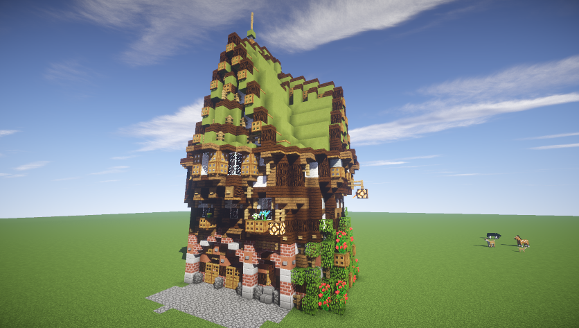 Ок. Да по материалу там ничего сверхъестественного: - немного красного кирпича - чуть-чуть каменных полублоков и кам. кирпича/булыги - обоженная лаймовая глина, обоженная неокрашенная - шерсть белая/светло серая - дуб/темный дуб/сосна, разные деревянные производные (заборы/люки/кнопки/двери) - чуть-чуть стекла - факелы/несколько ламп Может еще что-то, но в минимальных количествах. Меровийские городские дома, в целом, хотя и выглядят нарядно и заковыристо, по себестоймости очень экономные. Что моя отдельная еврейская гордость : )