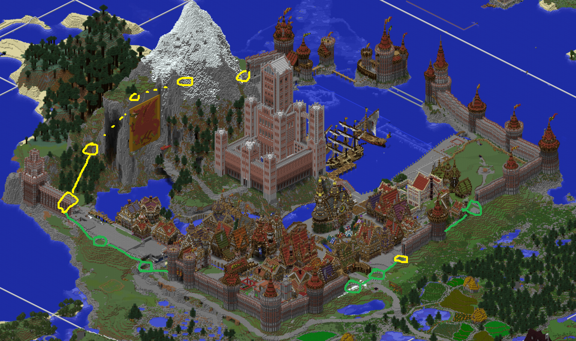 @Argentio, спасибо большое! Проверь свой счет в гномском банке, квиток в личке. @Black_falcon, извини, вчера устали с этим ивентом, не смогли. Сегодня сделаем сабу вечером, сейв в аттаче. @100g, я закончил дом (в целом). Извини, что долго, много разных проектов сразу + сам дом потребовал некоторого пересмотра моих клише и обучения муз новым позициям. В целом это был интересный опыт : ) Пришлось повозиться, чтобы приблизиться к требованиям заказчика. Я сделал конюшню на первом уровне, и вообще компоновку лестниц и помещений подверг максимальной эргономизации, чтобы из 1 части дома в другую можно было бегать быстро и интуитивно. В подвал сделал только лаз-заготовку. Но подвал-склад это такое святое, что каждый все равно потом обустраивает сам : ) Что самое забавное, в силу пропорций дом кажется довольно маленьким и игрушечным, но внутри там прилично пространства (4 этажа + чердак). Иллюзии. По внутренней отделке и разбитию на комнаты - сделай как тебе приятнее, у меня, так сказать, "базовый ремонт от застройщика". "Живая" стенка с цветочками красными тоже сугубо опционально -- не нравится милота, можно будет оторвать. Сегодня разметим тоже сабу. Сейв в аттаче. Можешь, если ты особенно жесток, еще вредничать и заказать доп. изменения, но знай совесть : ) > Следующий на очереди новый дом Фэлкона + клетки-камеры для зверей в Zoo. ---------------------------------------- По стене статус такой. Зеленым - знаю как делать и штука в процессе (на той или иной стадии готовности). Желтым - пока туманней. Хуже всего сейчас с юго-западной частью, где еще старообразный кособокий утес насыпан, видимо придется его частично скапывапть, частично творить какие-то чудеса.