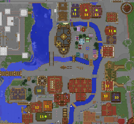 Нет, он свободен. Вот дома на продажу, цены (в меровинах). Желающие могут ходить-смотреть. Но есть момент: что кое-где еще будут перестраиваться улицы, и сами дома там могут иметь какие-то легкие недоделки: них самих или рядом там что-то раскопано некрасиво. Но это все мелочи, их легко довести, если конкретный дом кому-то приглянется. Второй момент, некоторые дома в целях композиционных и РПГшных имеют на первых этажах заготовку под лавки/мастерские. Это будет накладывать определенные особенности для владельцев. Их я пометил еще зеленой точечкой.