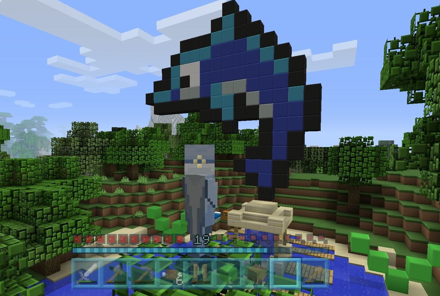Маленький дельфин ! В майнкрафте как то трудно из 5 блоков сделать скульптуру . Что бы передать грацию дельфина ну или хотя бы что бы было похоже на этого зверя нужно очень постараться и получится ох и не маленькая постройка . Так что Маленький и Дельфин понятия не совместимые . Даже в таком пиксельном изображении и то трудно понять что это дельфин