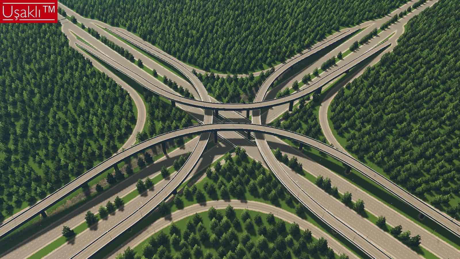 2 пути в 4-х направлениях в одной плоскости не развести... В копилку идей - погугли игру Cities Skylines. Развязки дорог максимально продуманы именно в ней. Найдешь подходящую эстетику, к ней уже привязать функционал.